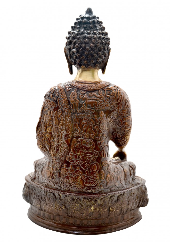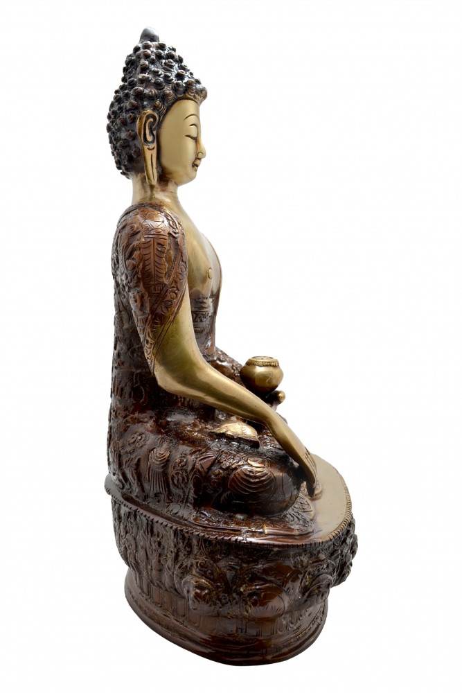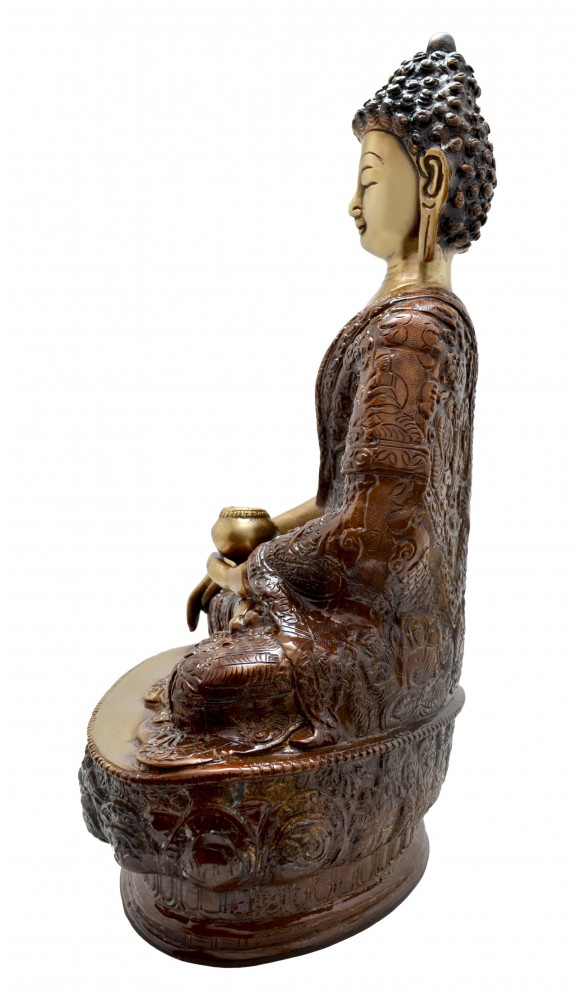 Akshobhya is one of the five dhyani buddhas (wisdom buddhas), along with Vairocana, Amitabha, Ratnasambhava, and Amoghasiddhi. Akshobhya Buddha symbolizes the overcoming of passions such as anger and hatred towards other beings. The Akshobhya buddha originates from the blue mantra "Hum" and when he became a Buddha and reached enlightenment, he was given charge over the eastern paradise Abhirati. Sankskrit for this land translates to the joyous, so therefore, it is the land of the joyous. It is believed that those who are reborn in this realm can never fall back to lower realms of consciousness and are never to be born again. Therefore, it is said that all believers should seek to follow and fulfill the vow of Akshobhya.