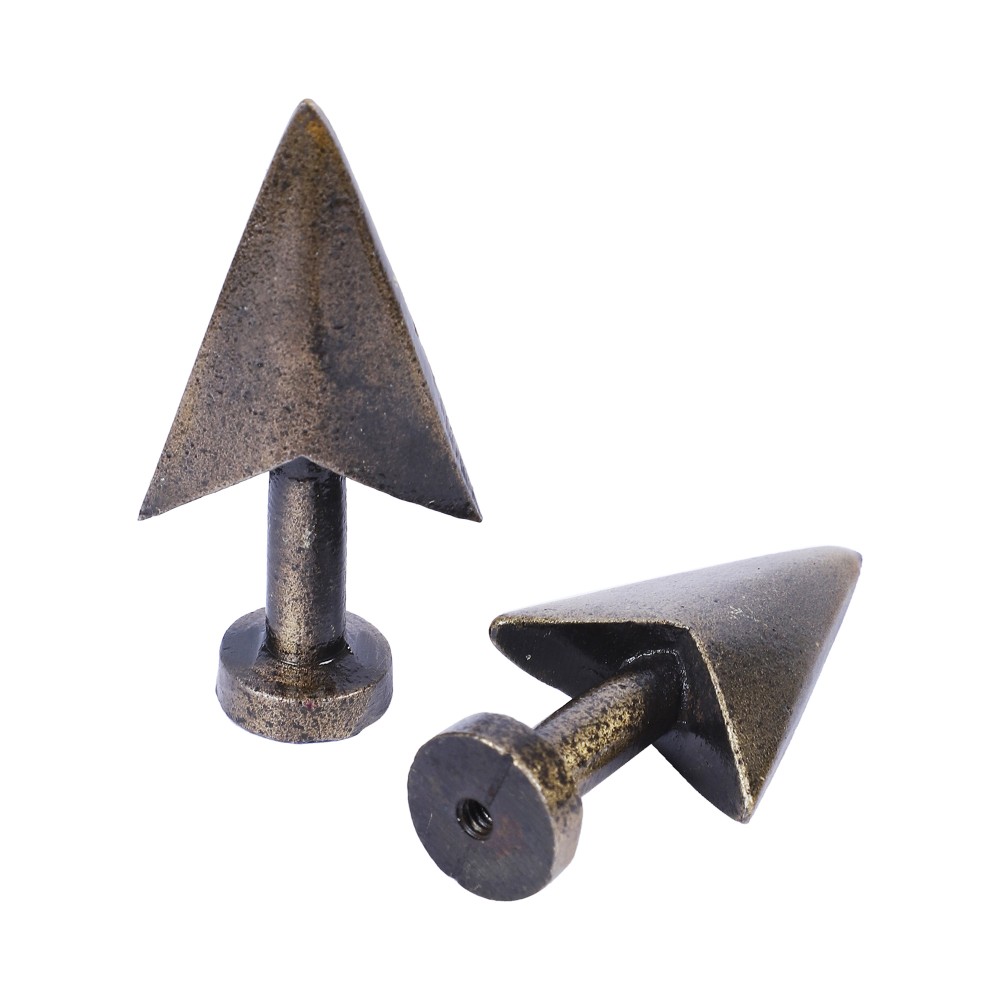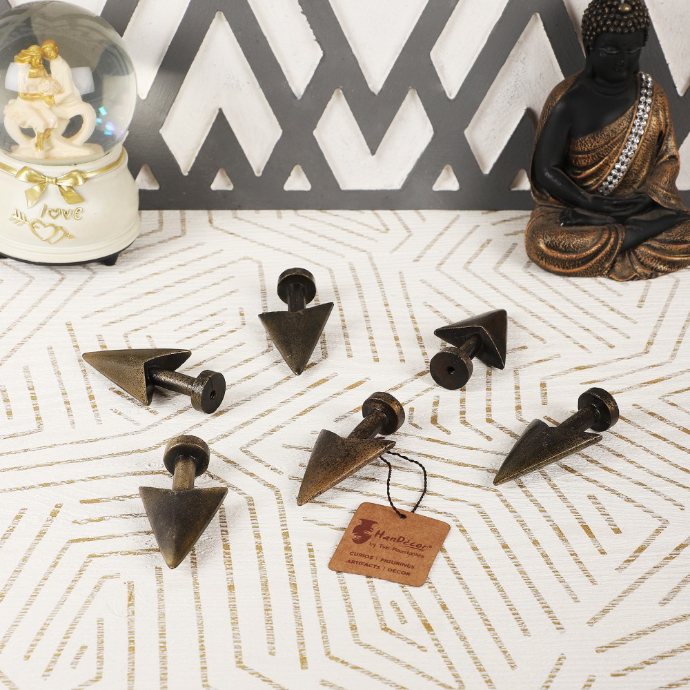 Add a personal touch to a chest of drawers with this metal arrow drawer knob handle. You push and pull your drawers, why not make it more than just functional? Make it decorative, too! Brass Finish Metal Arrow Pull is perfect for adding a special touch and upgrade to your furniture and home accents. Give those desk, dresser, and cabinet drawers a face lift with this lovely handle. This drawer/wardrobe knob has a beautiful and eye-catching design, inspired from the flying arrow. Our unique knobs collection can be used for updating the furniture or refurbishing a home or a kitchen cabinet. The Knobs are made of solid metal and are of High-end International Quality along with durable Metal finish. Handcrafted in iron with utmost detailing and antique brass finish, the metal knobs infuses vibes into the home and add a utility solution. Anyone visiting you will be delighted and transported to a good mood as soon as they lay their eyes on this stunning knob.