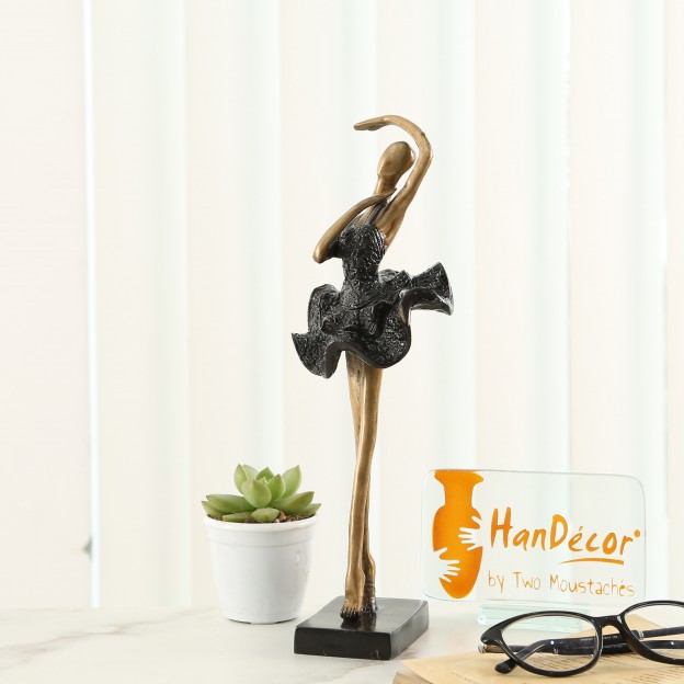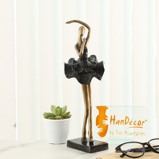 Watch this ballet dancer statue come alive in your living room and wow all your family members and guests alike! This Two Moustaches marvel is crafted from durable and shining brass and looks absolutely smashing in its mixture of golden brown and black.