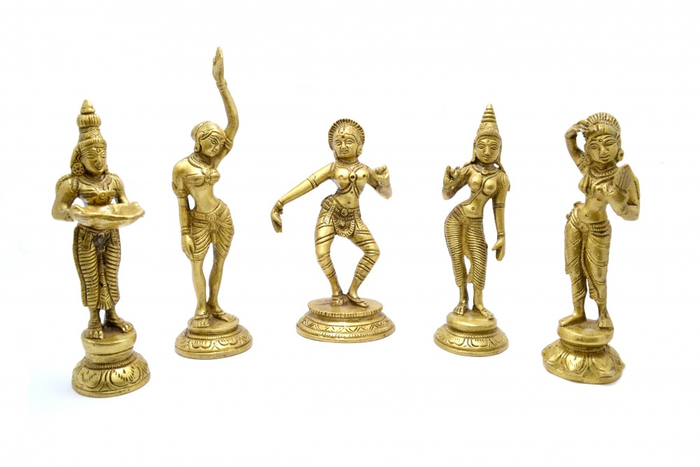 According to the Hindu mythology, Apsaras were beautiful female creatures that descended from heaven to entertain Gods and Kings with their dance. These beautiful Apsara Showpieces from the house of Two Moustaches are crafted to please you with the ancient beauty. The five different figurines will surely enhance the beauty of your living room.