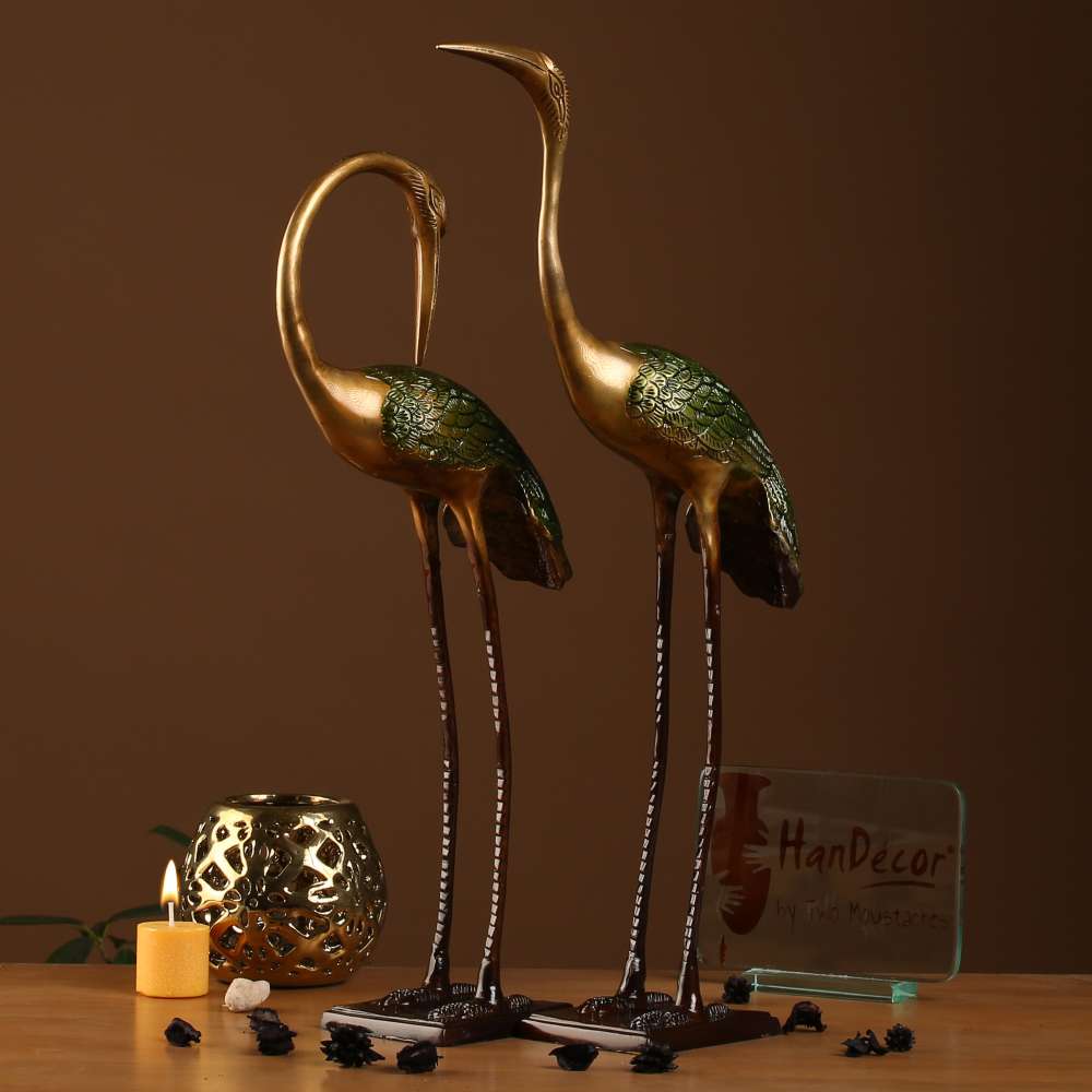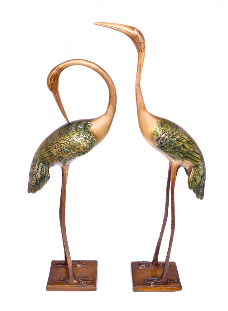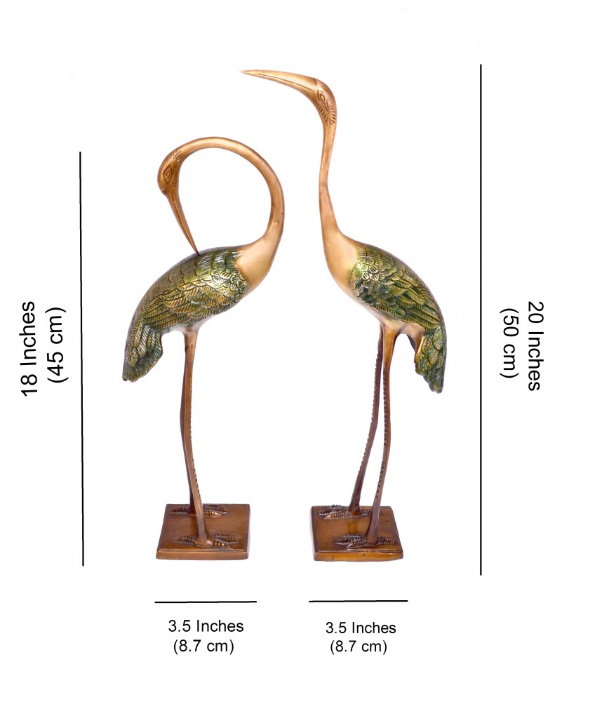 Add an elegant touch of nature to your garden or patio with this set of 2 striking cranes showpieces. The set includes both a female and male crane, as well as ground stakes to secure them to the ground. Whether you use them indoors or out, the rust-free Brass construction and hand-applied finish are sure to hold up for years to come.