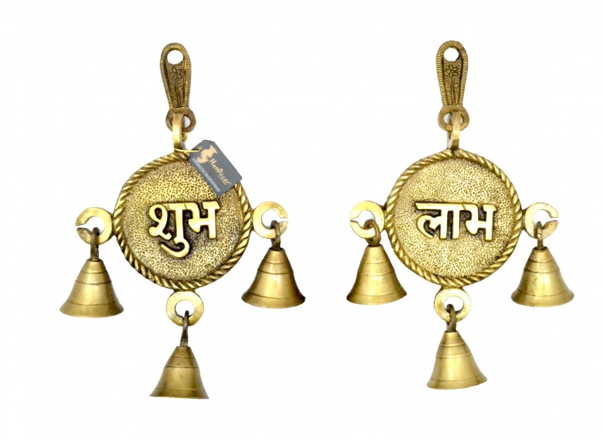 Shubh and Labh are sons of Lord Ganesha. Shubh means "Goodness" and Labh means "Benefit". Made from pure brass, this is a set of two hanging bells which can be used in the temple or for Decoration of your home. It is also believed that these bells bring good luck to your home.