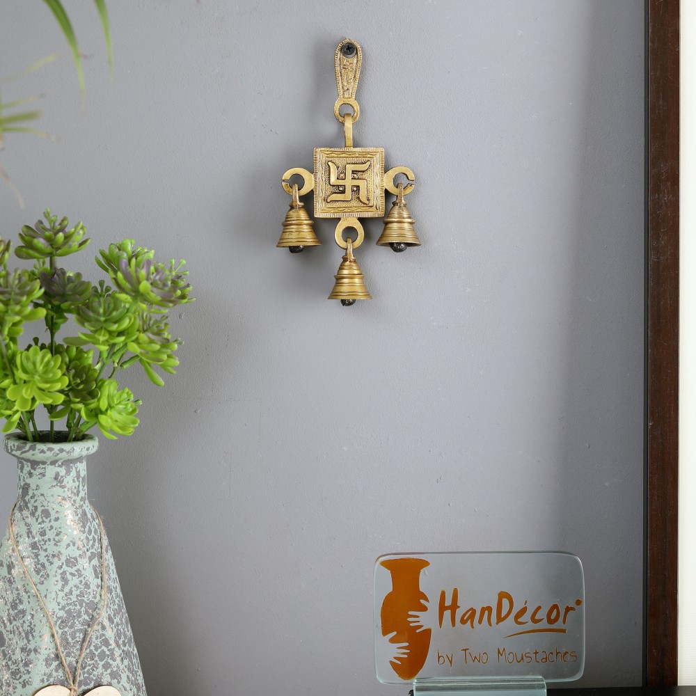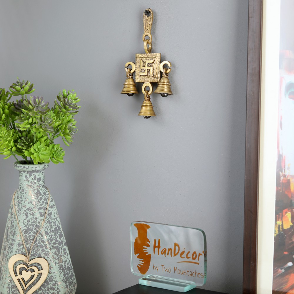 This Swastika Bell hangs from brass hooks, and it is 6 inches tall. This Bell can be used outdoors or indoors, so you can let the wind resonate the bell. It is made out of brass with an antique finish applied. Such bells can also be hanged at home and is a perfect home décor. Also, the ringing of bells removes negative energy and brings positive energy at home.