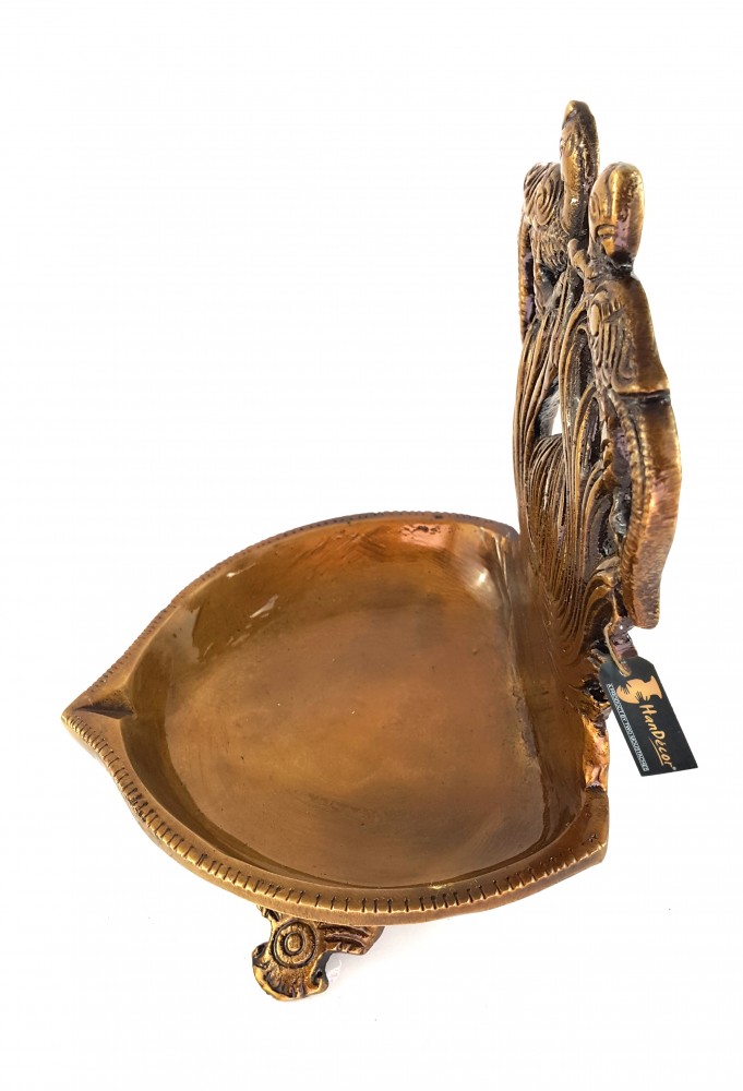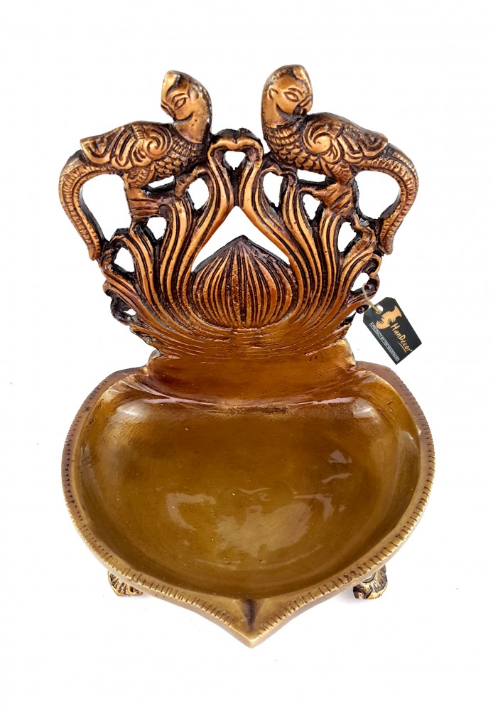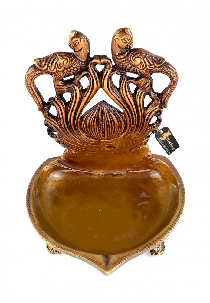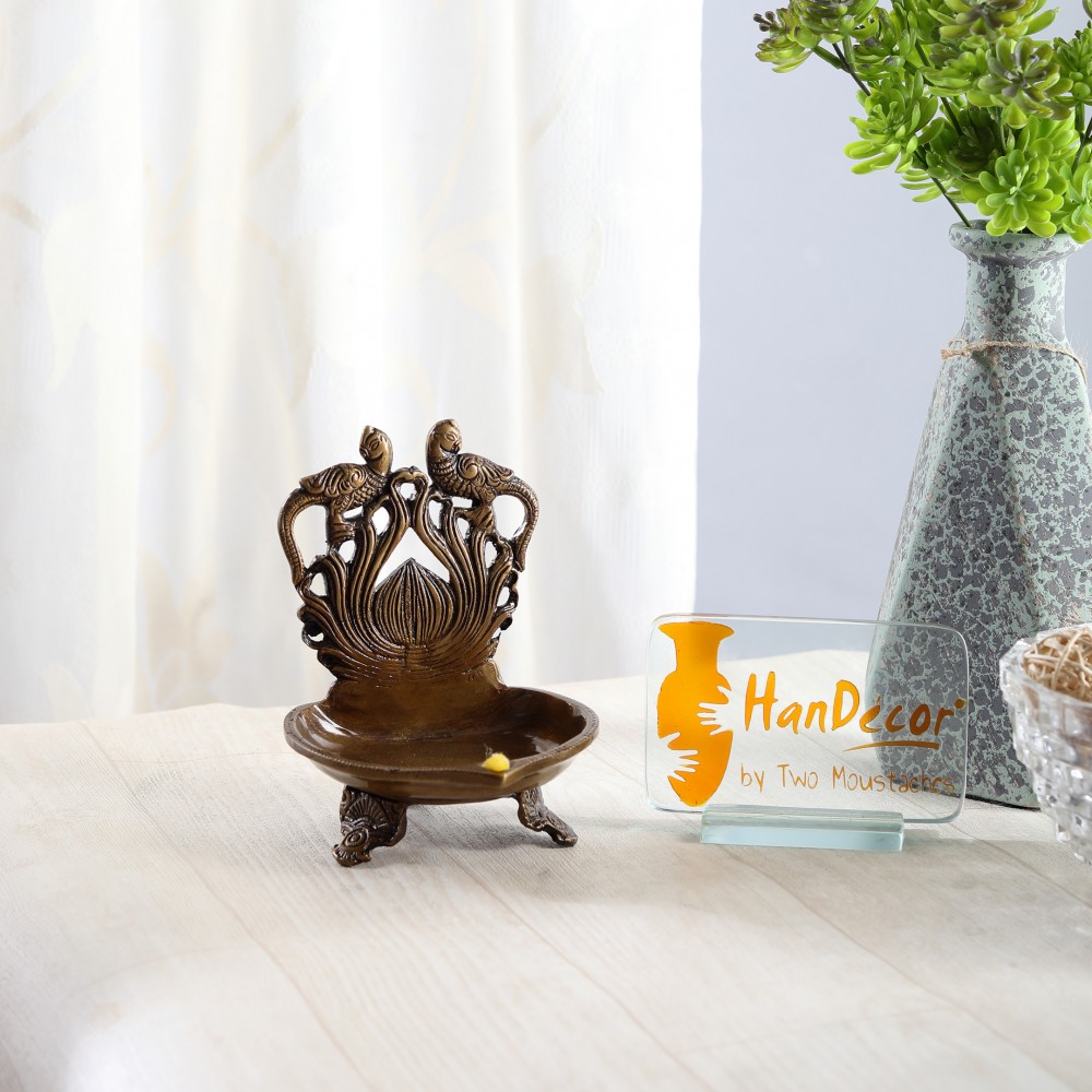 This Deepak or Diya isn't just a Diya. Its a multipurpose decorative embellishment for all modern homes. This product has been designed quite intelligently and features twin peacock at the top. The brass Diya's are included in this table diya, depicting twin peacock are dancing at the top of the Diya. To compliment your house and Diya's, artisans have installed an ethnic handcrafted tri base, making it one of the most pious and auspicious additions to any modern home. The table diya is bright and beautiful for any temple or home. Also makes for a excellent decor piece, collective and gifting option.
