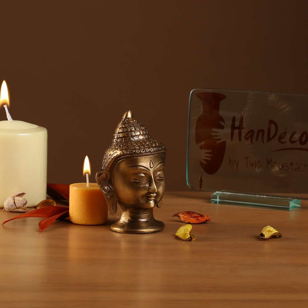 This Buddha head is the perfect peice of home decor.The cranial bump on the Buddhas head, also called ushnisha, stands for special wisdom. The urna, a round tuft of hair between the eyebrows, indicating supernatural vision, short curled hair, indicating nobility.