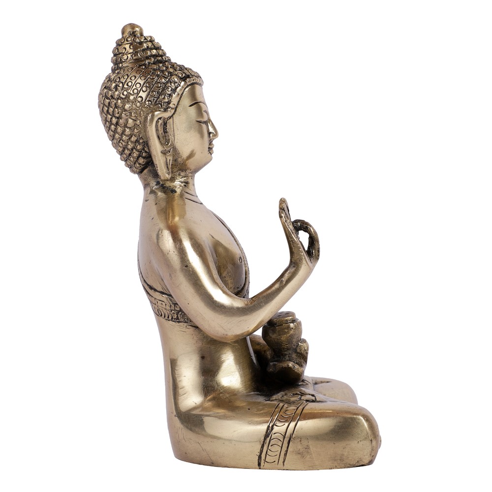 Blissful Buddha in Meditating Pose, a posture of calm, is a brilliant artistic work of Two Mustaches Brand. Life of Buddha has been illustrated with over 100 poses holding significance to an event of life of Buddha. Meditating Buddha's path of life leads the practitioner to enlightenment and adds up to your well being. Owning this statue could lead to experiencing an increase in the healing power within oneself.