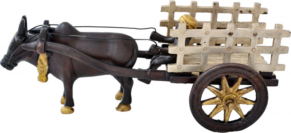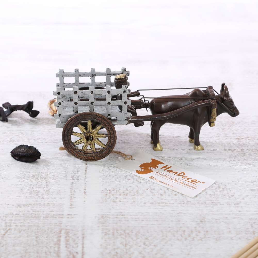 Two Moustaches Multicolor Brass Bullock Cart Showpiece is an excellent carved bullock cart which boasts of the artistic imagination of the Indian craftsmen. This cart comes in 6.5 x 3 x 2.5 inches and is made of brass. It features the transport method used in the olden days and creates an aura of nostalgia and melancholy.