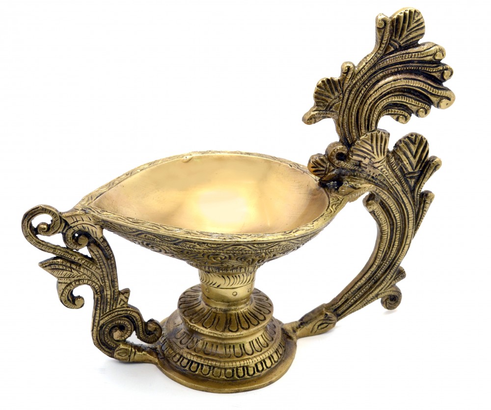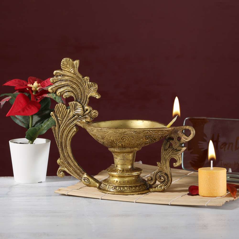 Two Moustaches brings to you its handcrafted pooja Oil Diya. Lighten up your house with a glow of tranquility, harmony and charm with this excellent art piece. It is ideal for gifting and a must have for a pooja room. Two Moustaches is known for using only high-quality brass material for their metal handicraft and this piece stands as an example of unmatched quality and creativity.