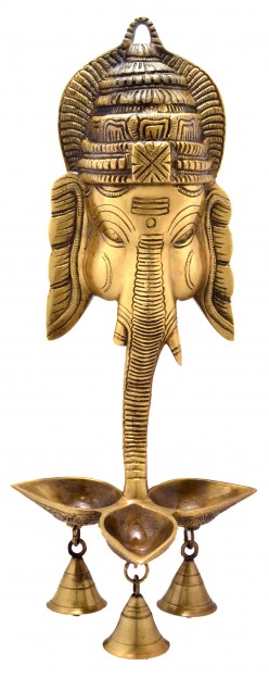This designer Deepak or Diya isnt just a Diya. Its a multipurpose decorative embellishment for all modern homes. The product has been designed quite intelligently and features a Lord Ganesha Wall Hanging. The brass Diyas are included in this wall hanging, depicting that Lord Ganesha is offering three Diyas. To complement the wall hanging and Diyas, makers have installed three bells below each diya, making it one of the most pious and auspicious additions to any modern home. The wall hanging is bright and beautiful for any temple or home.