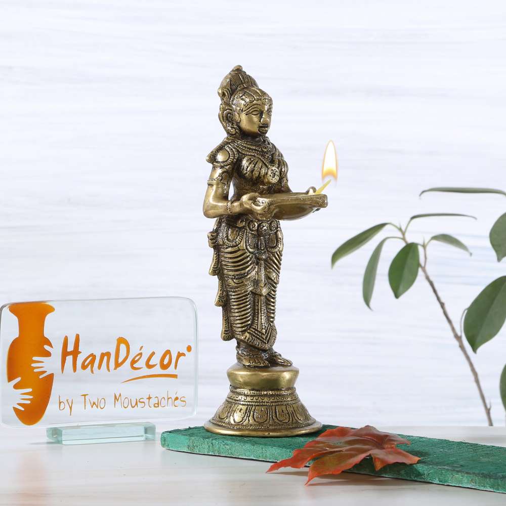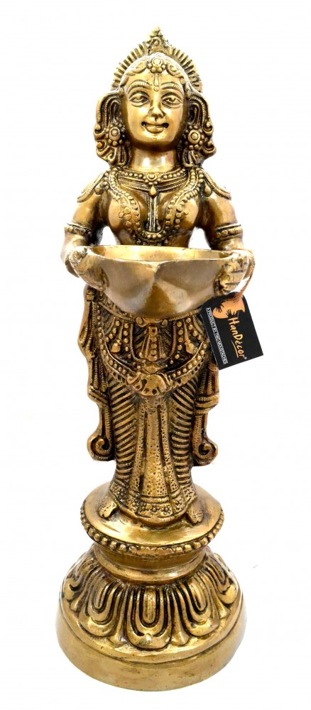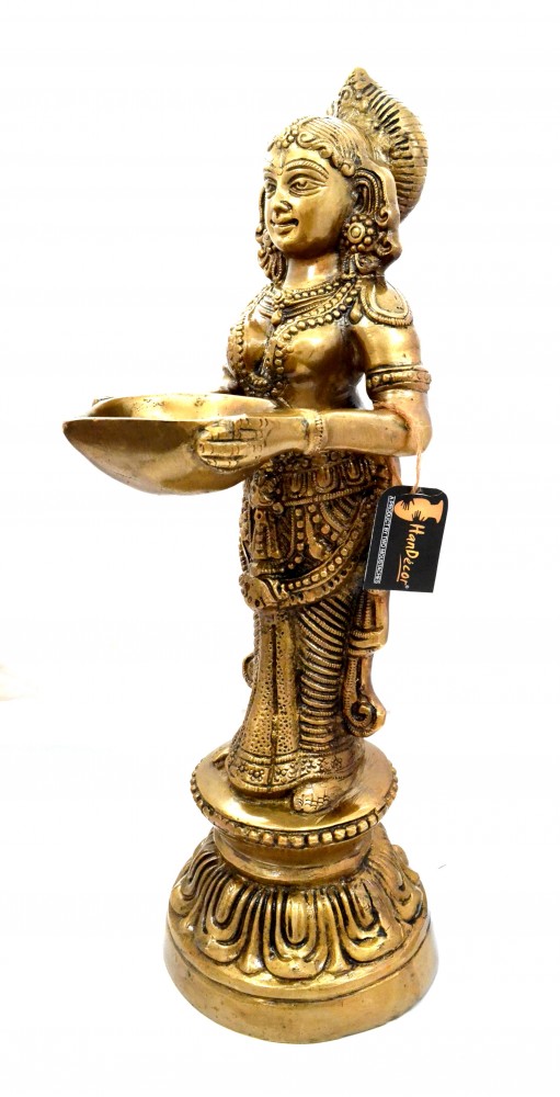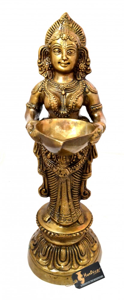 Deeplakshmi or Deep Lakshmi statues are considered very auspicious in hinduism. Goddess Lakshmi is portrayed carrying an lamp in her hands. When the sun goes down at the end of the day, its the light of the 'deep' or 'diya' or earthen lamp that dispels the darkness. Darkness is associated with sadness, lifelessness, ignorance etc. Light or 'Prakash' is Lakshmi, who gives us the wealth of brightness. Deep Lakshmi brings joy, celebration, 'gyan' or knowledge and life. She shows us the way even in dismal, dull, and dark situations. Deep Lakshmi signifies the 'ray of light' that inspires us towards life, ideas, and progress. Deep Lakshmi idol represents Goddess Lakshmi standing with Deep or Lamp and gives us the Wealth of Brightness.