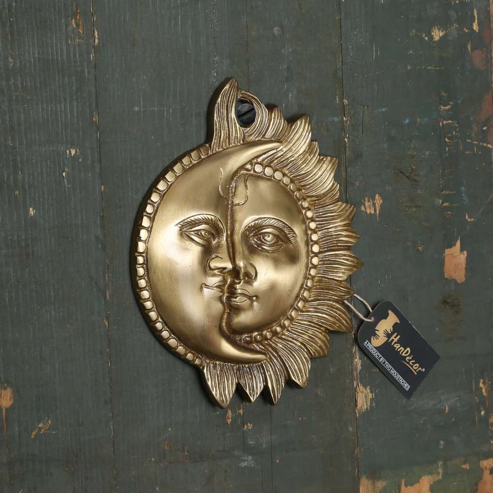 This is an exclusive wall hanging from the house of Handecor. The Sun and Moon have been worshiped as gods for many ages. In fact, there is evidence that suggests all major religions have their roots in the sky. This wall hanging shows universal pagan expression of the merging of opposites. Like the Yin Yang, the marriage of the male sun and the female moon represents unity in diversity, compromise instead of conflict, and conformity to a new consciousness where all is one.