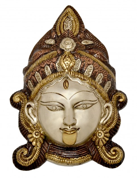 Bring home this beautifully handcrafted Durga Face Wall Hanging in brass metallic look with traditional Crown (mukoot) complimented by finely cut metal to maximize the beauty of the artifact. This Wall Decor is ideal to be placed in drawing room, mandir & entrance of your home.
