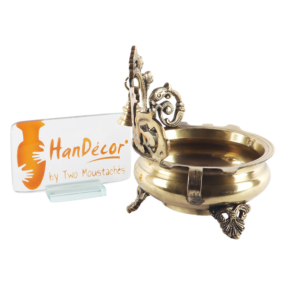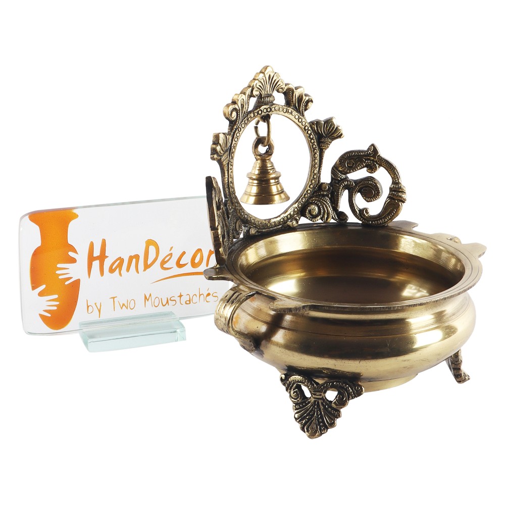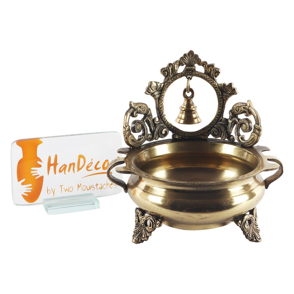 Easily recognizable by its distinctive shape, the urli makes a handsome addition to the decor of any room, and now, you can enjoy the beauty of one that is made according to the time-honored traditions in your own home with the Handmade Brass Ethnic Indian Carving Design Urli with a bell inside it. Produced using sand casting techniques that have been passed down through generations of skilled metalworkers, the Handmade Brass Urli is a truly authentic Indian urli. To display the bowl in the traditional way, fill it with water and then float living or artificial flowers on top. Add water to the urli, mix a bit rose water and float flowers of your choice. You can also place floating candles on the surface of the water. No matter how you use this handmade, you're certain to be impressed with its quality! Beautify your home with this traditional Indian decorative design. Add this Handmade Brass Urli to your cart now!
