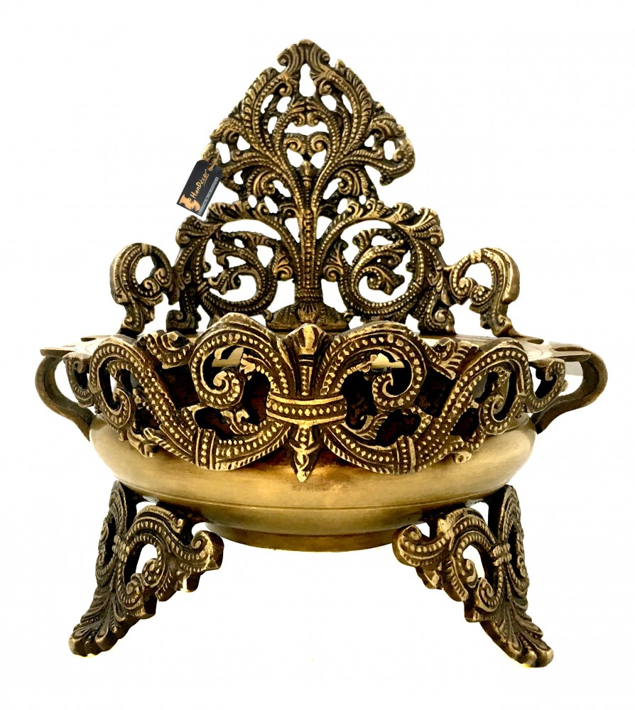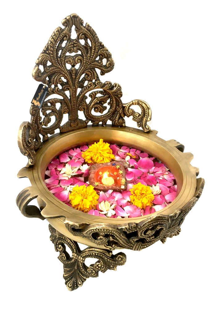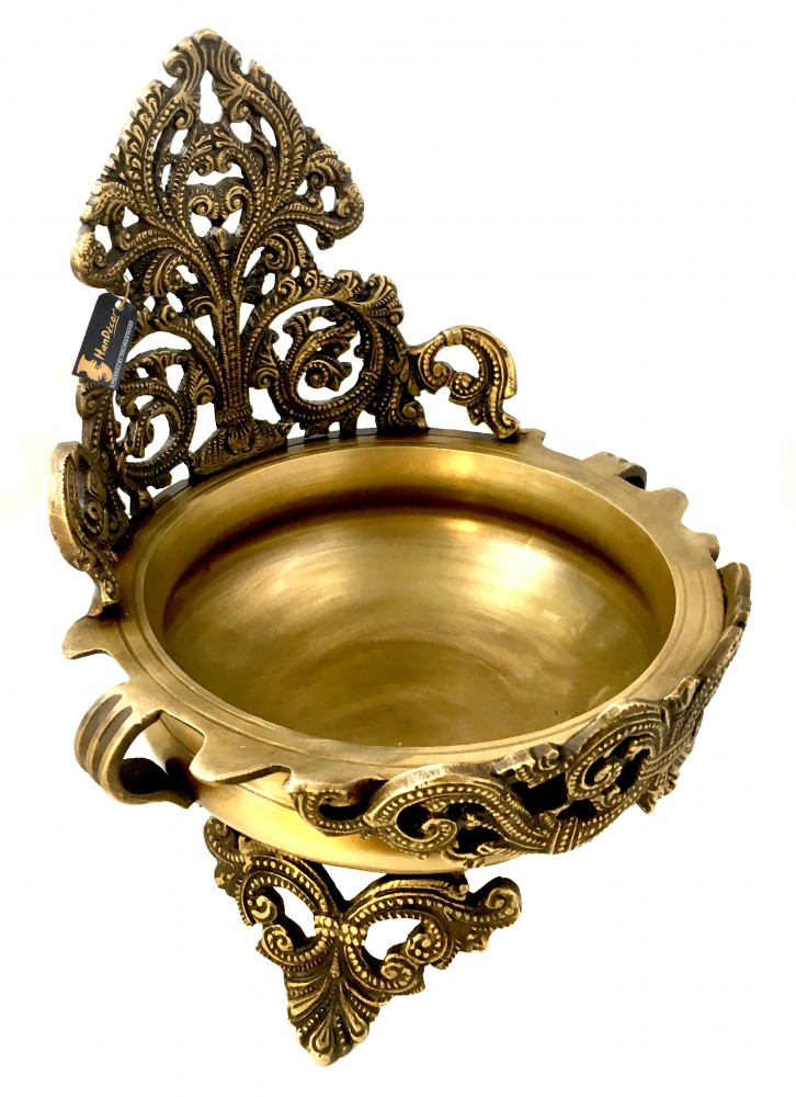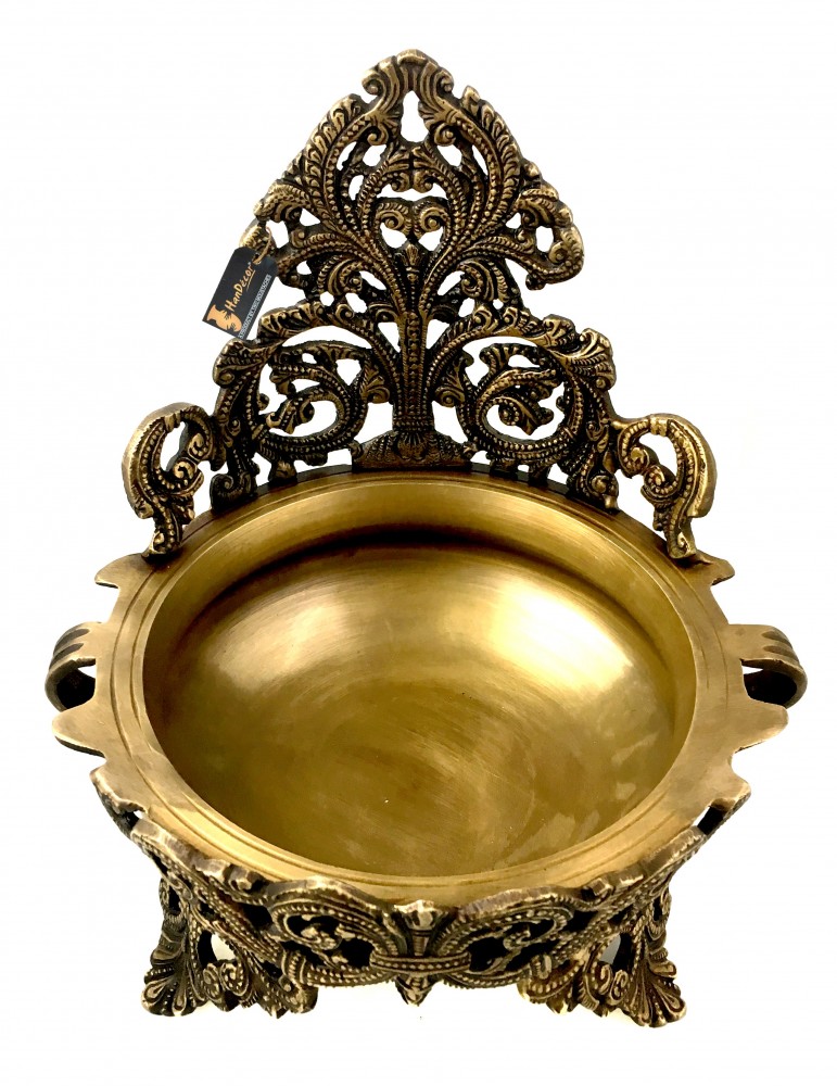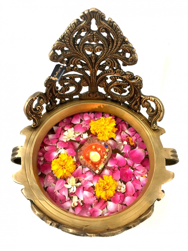 Bring a royal look to your interior with this beautifully carved brass Urli made by the skilled and talented craftsmen of India. This beautiful brass Urli will occupy the pride of place in your home. It makes the ideal decor accessory when filled with water and flower petals. The antique gold color looks striking and the use of brass ensures longevity and ease of maintenance.