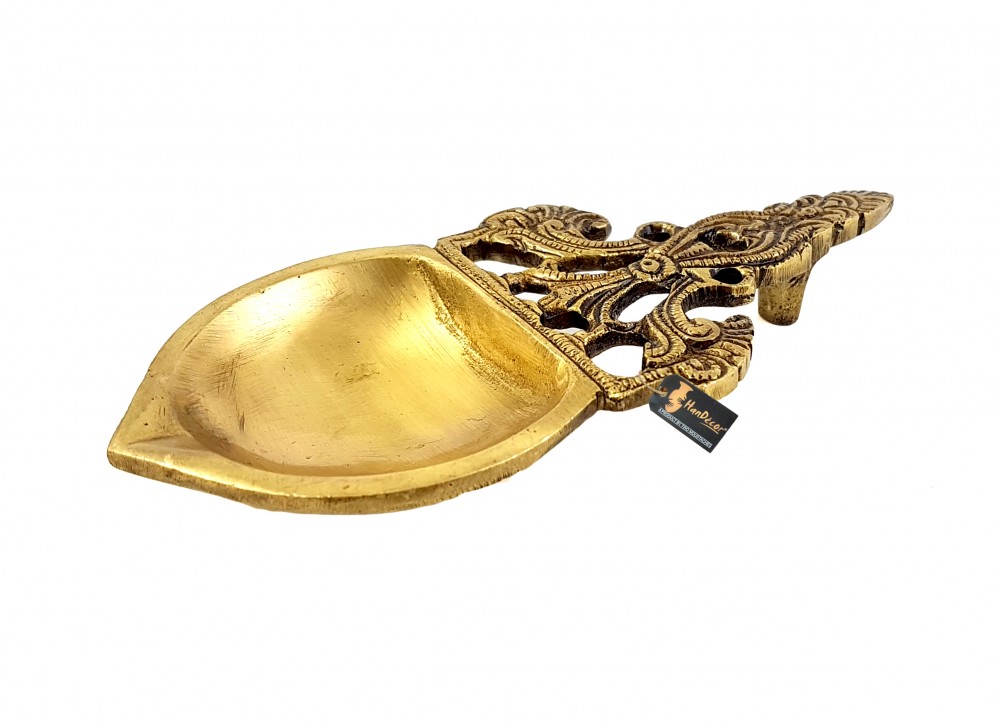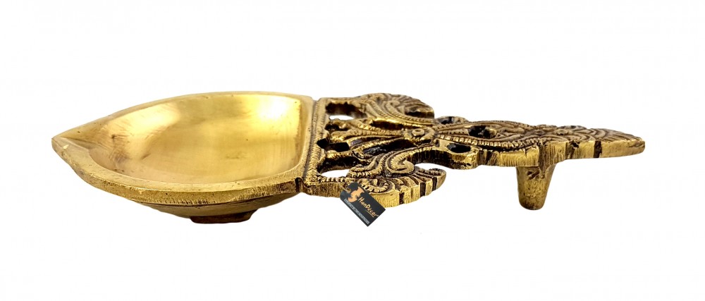 Prayer time will be special when you include Two Moustaches Ethnic Indian Design Brass Aarti Spoon. This eye-catching aarti spoon has beautiful carvings that add to its overall charm. Gold in color, this Pooja spoon is made of brass. It has a long handle that offers easy handling. Easy to maintain and long lasting, this Pooja spoon is quite sturdy as well. It Looks Excellent in your home or temple and is suitable for gifting purpose as well.