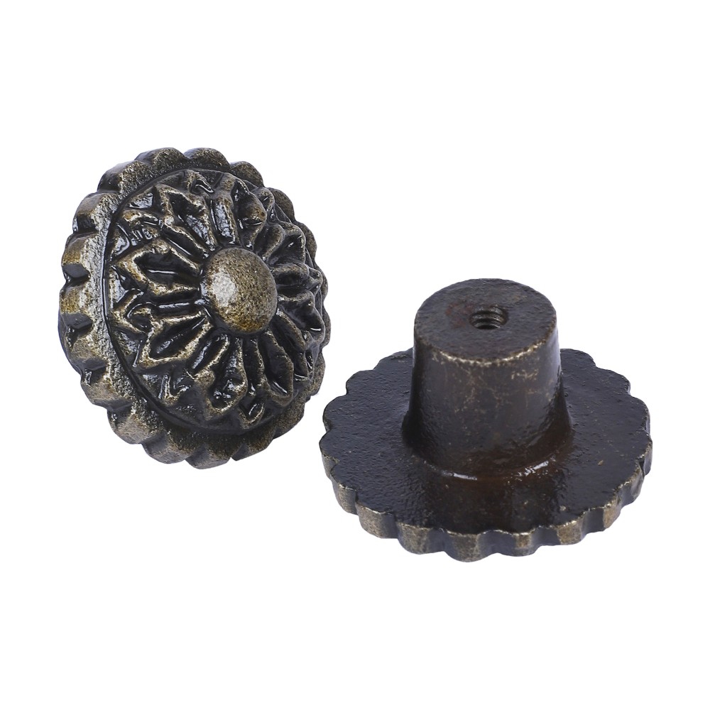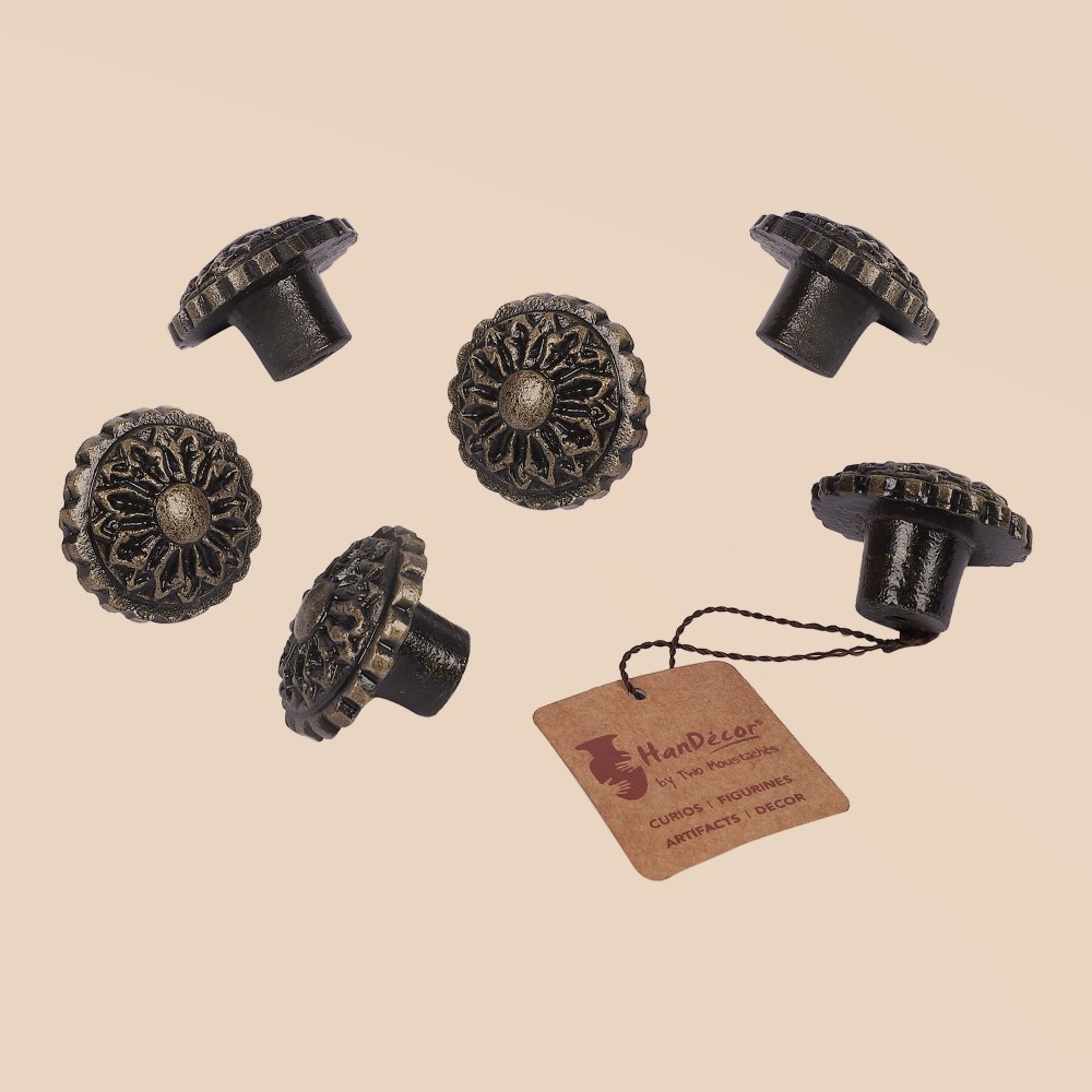 Add a personal touch to a chest of drawers with this metal spiral drawer knob handle. You push and pull your drawers, why not make it more than just functional? Make it decorative, too! Antique Brass Finished Ethnic Indian Design Pull is perfect for adding a special touch and upgrade to your furniture and home accents. Give those desk, dresser, and cabinet drawers a face lift with this lovely handle. This drawer/wardrobe knob has a beautiful and eye-catching design, inspired from the ethnic indian art. Our unique knobs collection can be used for updating the furniture or refurbishing a home or a kitchen cabinet. The Knobs are made of solid metal and are of High-end International Quality along with durable Metal finish. Handcrafted in iron with utmost detailing and antique brass finish, the metal knobs infuses vibes into the home and add a utility solution. Anyone visiting you will be delighted and transported to a good mood as soon as they lay their eyes on this stunning knob.