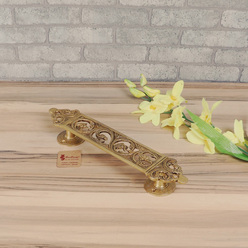 Creativity knows no boundaries and this season while renovating your home add a touch of ethnic presence in the house with the Two Moustaches Ethnic Indian Carved Brass Door Handle made with the finest quality of brass. The door handle will look great on both wooden and glass doors so whether it’s a new office, shop or home you can get a blessed feeling always by placing this divine handle which has the ethnic Indian design and leaves depicted in brass. This brass Ethnic Indian Carved Brass Door Handle can be cleaned easily to get that fine shine and it will always look like new. Onlookers are sure to glance back at it and even praise you for the choice. It gives a royal feeling to the interiors.