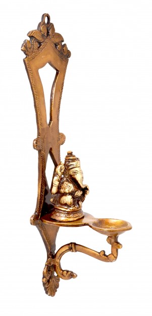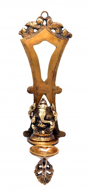 This golden colored Ganesha hanging diya brought to you by Two Moustaches is a stylish and useful addition to every home. This sleek and beautiful hanging Ganesha Diya is made of durable and sturdy brass. This wall hanging diya will look stunningly good in your house entrance, temple house, hall etc. The product features Lord Ganesha designed very exquisitely and intelligently. This unique accent piece adds touch of elegance to any home.