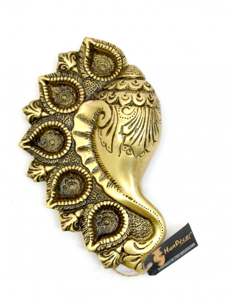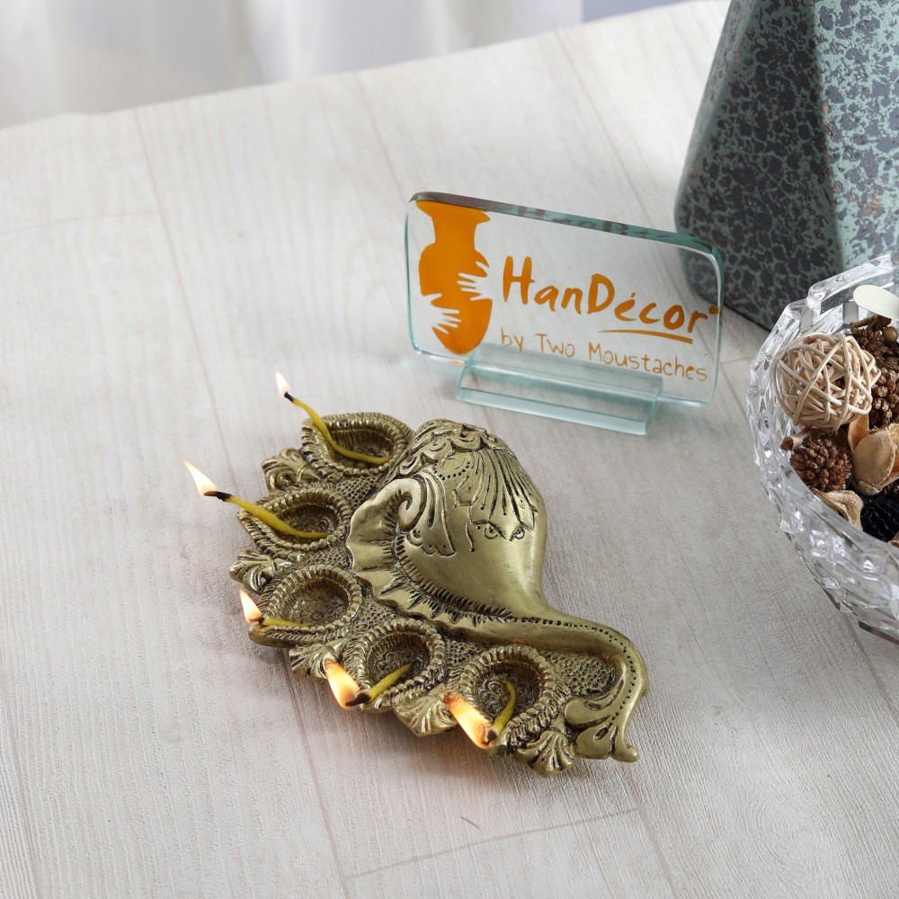 There are some home decor items which combine utility and beauty magnificently and this Two Moustaches 5 Oil Wick Diya in the shape of Shankh (Conch) is a prime example. Made of brass, this antique gold beauty will be a show stealer in any home for sure!