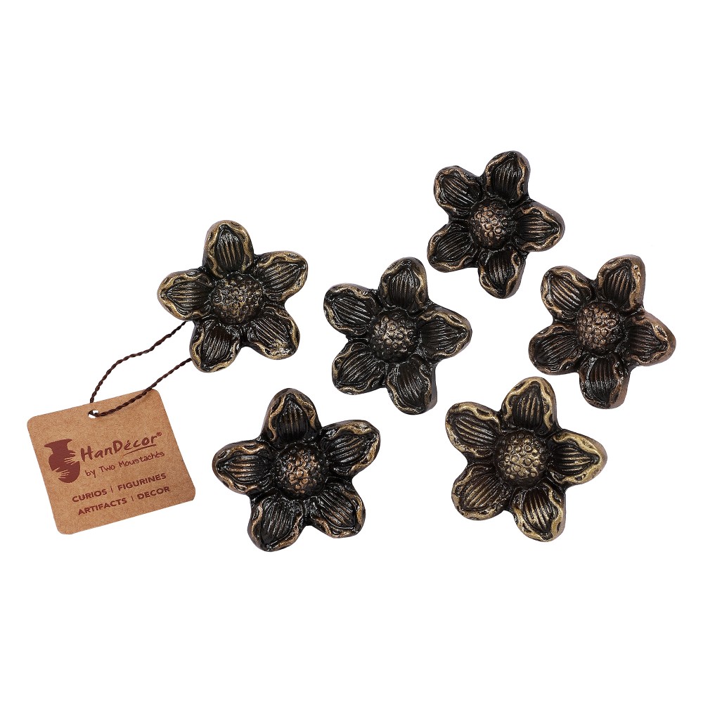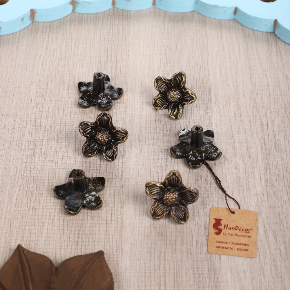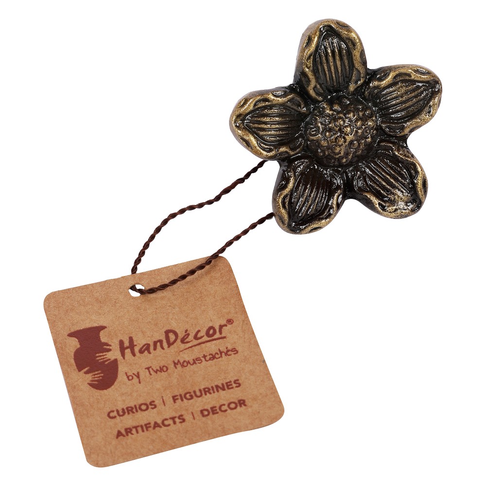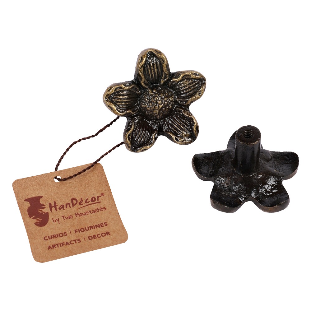Add a personal touch to a chest of drawers with this metal Flower design drawer knob handle. You push and pull your drawers, why not make it more than just functional? Make it decorative, too! This Metal Pull is perfect for adding a special touch and upgrade to your furniture and home accents. Give those desk, dresser, and cabinet drawers a face lift with this lovely handle. This drawer/wardrobe knob has a beautiful and eye-catching design, inspired from the Flower. Our unique knobs collection can be used for updating the furniture or refurbishing a kitchen cabinet. The Knobs are made of solid metal and are of High-end International Quality along with durable antique brass finish. Handcrafted in iron with utmost detailing and antique brass finish, the metal knobs infuses vibes into the home and add a utility solution. Anyone visiting you will be delighted and transported to a good mood as soon as they lay their eyes on this stunning knob.