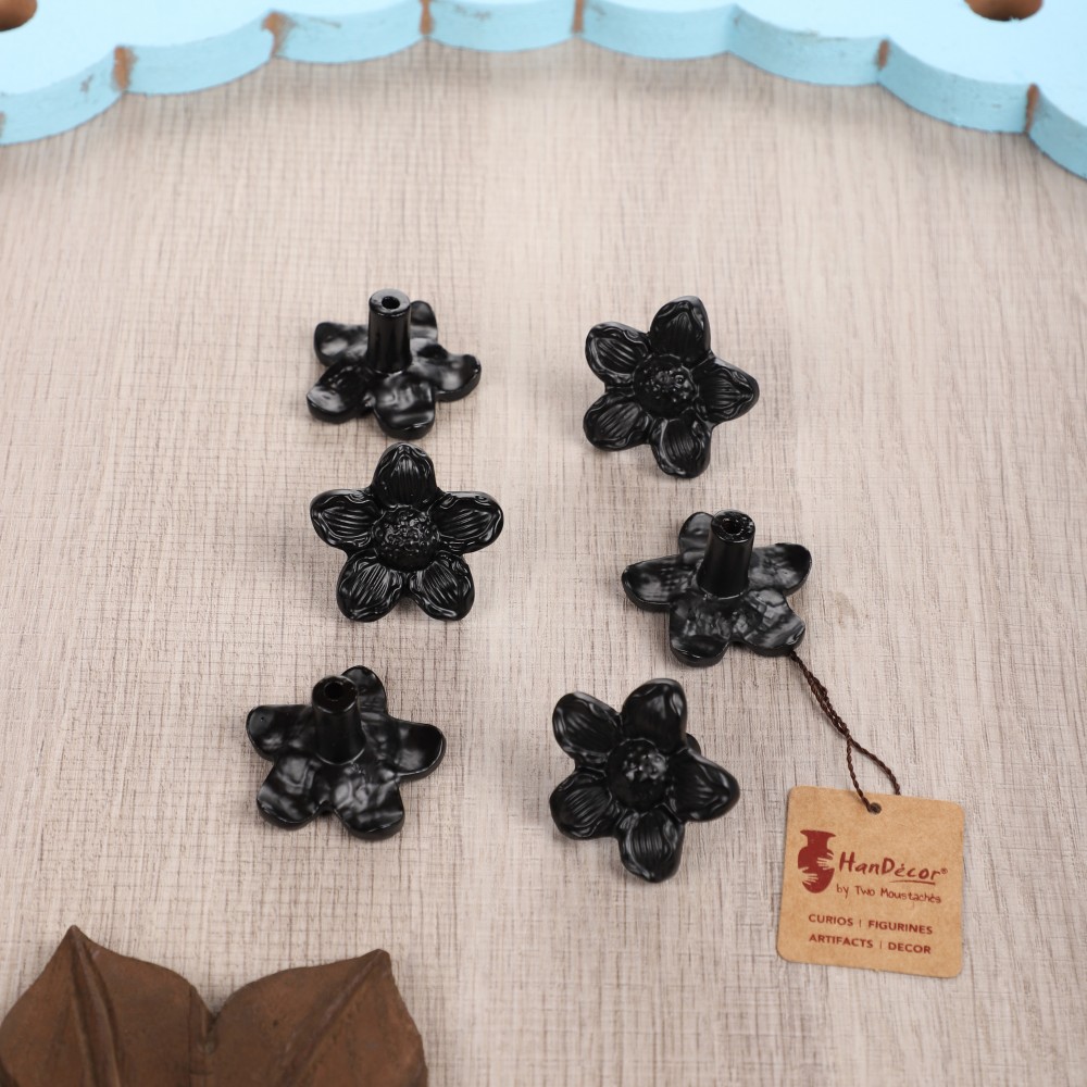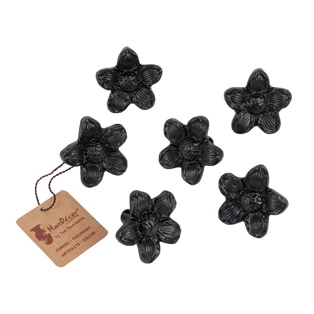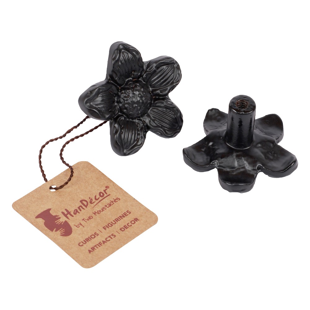 Add a personal touch to a chest of drawers with this metal Flower design drawer knob handle. You push and pull your drawers, why not make it more than just functional? Make it decorative, too! This Metal Pull is perfect for adding a special touch and upgrade to your furniture and home accents. Give those desk, dresser, and cabinet drawers a face lift with this lovely handle. This drawer/wardrobe knob has a beautiful and eye-catching design, inspired from the Flower. Our unique knobs collection can be used for updating the furniture or refurbishing a kitchen cabinet. The Knobs are made of solid metal and are of High-end International Quality along with durable black finish. Handcrafted in iron with utmost detailing and black finish, the metal knobs infuses vibes into the home and add a utility solution. Anyone visiting you will be delighted and transported to a good mood as soon as they lay their eyes on this stunning knob.