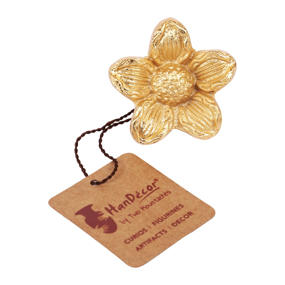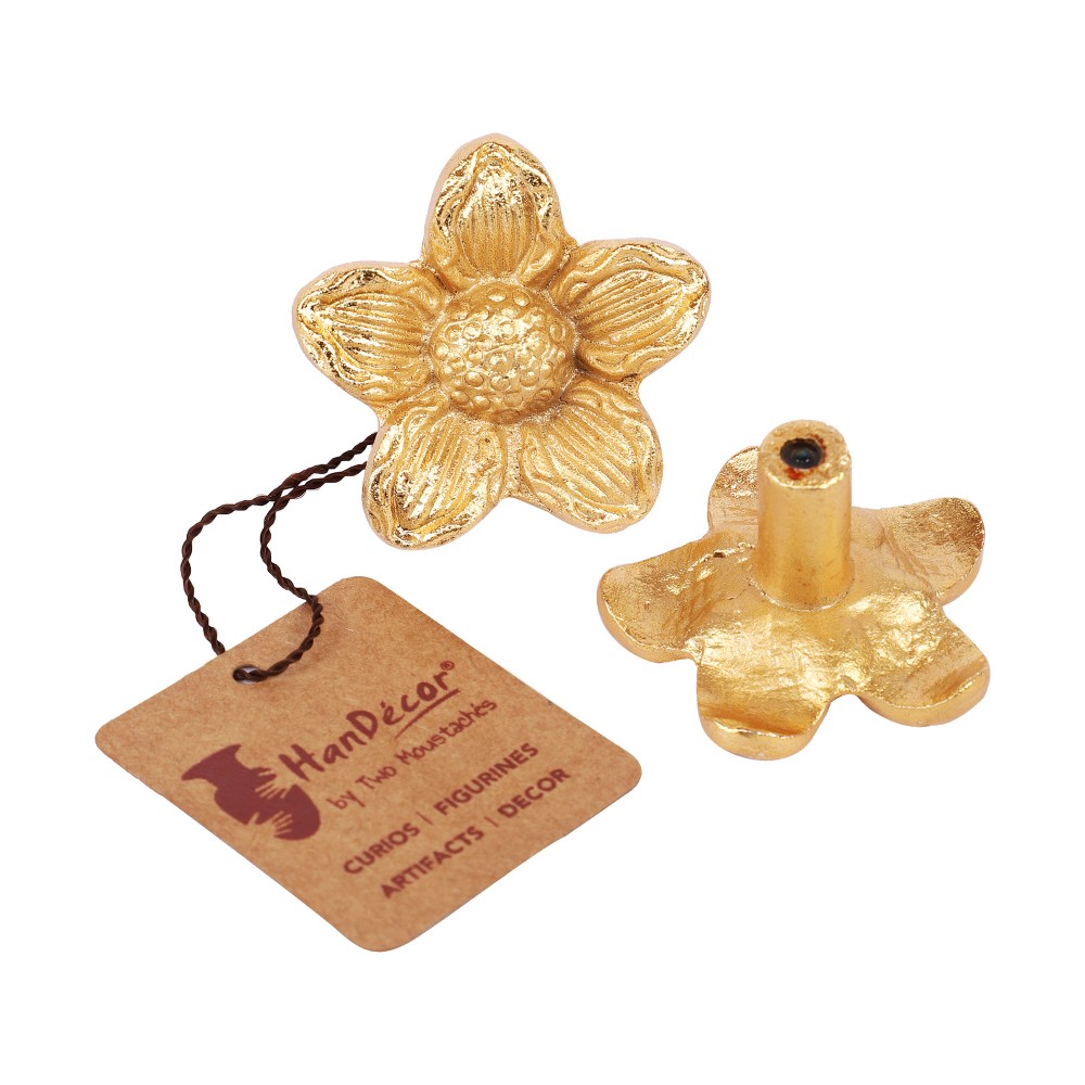 Add a personal touch to a chest of drawers with this metal Flower design drawer knob handle. You push and pull your drawers, why not make it more than just functional? Make it decorative, too! This Metal Pull is perfect for adding a special touch and upgrade to your furniture and home accents. Give those desk, dresser, and cabinet drawers a face lift with this lovely handle. This drawer/wardrobe knob has a beautiful and eye-catching design, inspired from the Flower. Our unique knobs collection can be used for updating the furniture or refurbishing a kitchen cabinet. The Knobs are made of solid metal and are of High-end International Quality along with durable golden finish. Handcrafted in iron with utmost detailing and golden finish, the metal knobs infuses vibes into the home and add a utility solution. Anyone visiting you will be delighted and transported to a good mood as soon as they lay their eyes on this stunning knob.