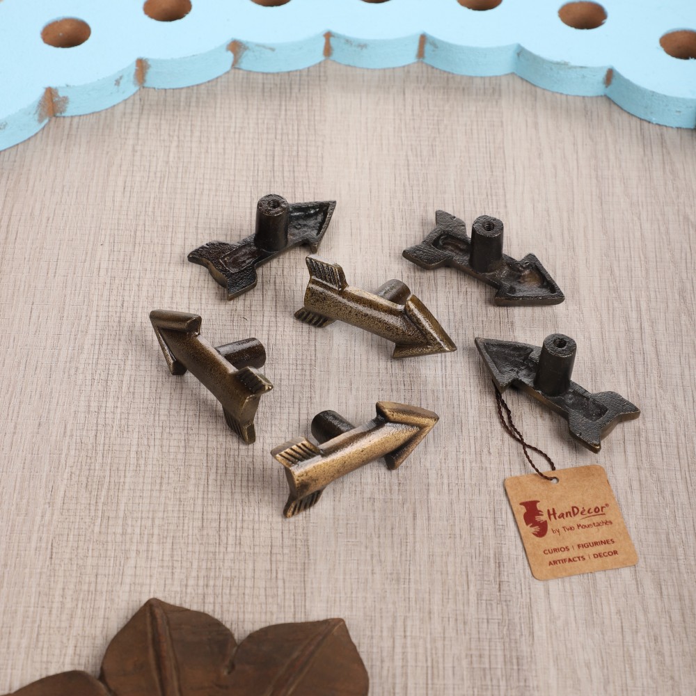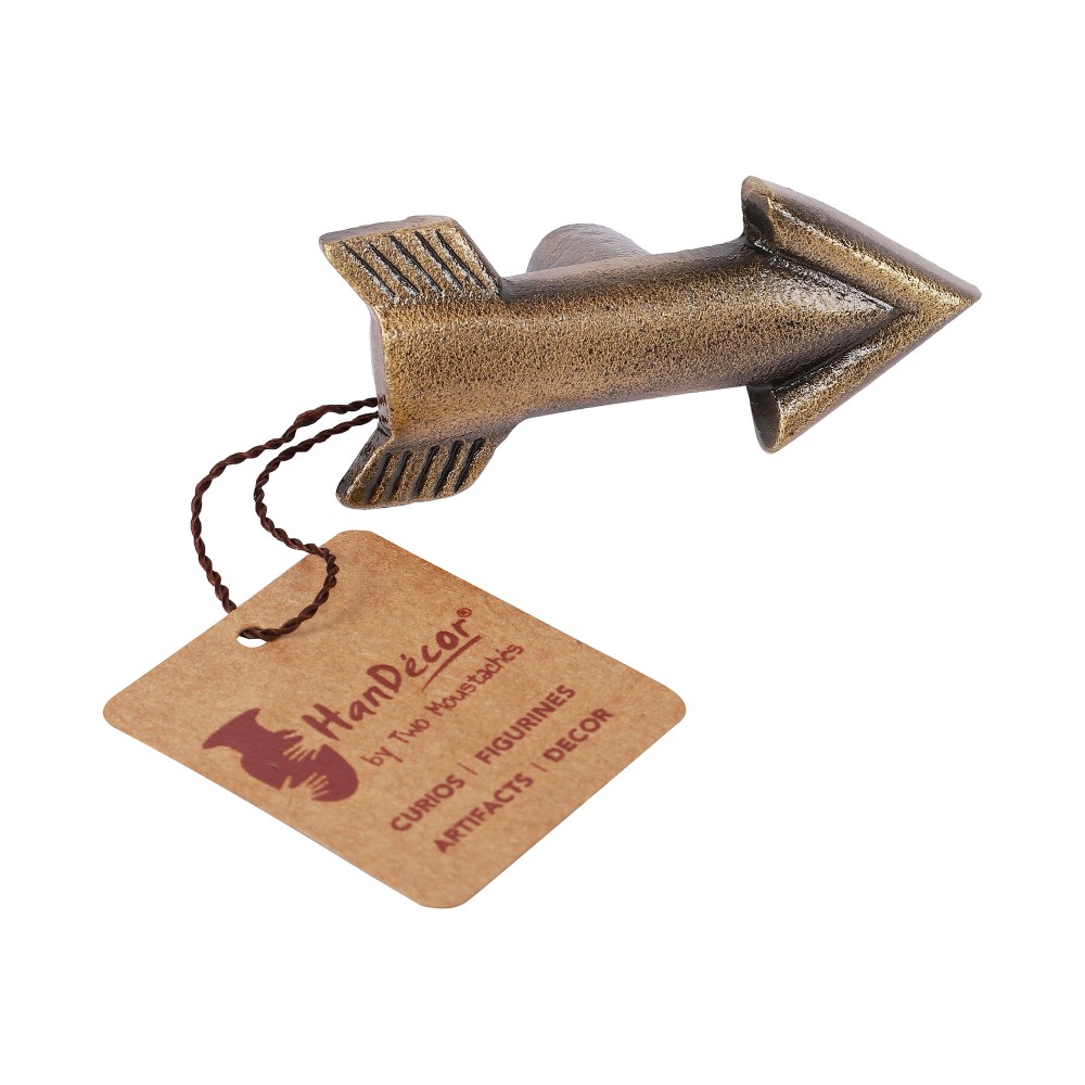 Add a personal touch to a chest of drawers with this metal arrow drawer knob handle. You push and pull your drawers, why not make it more than just functional? Make it decorative, too! Brass Finish Metal Arrow Pull is perfect for adding a special touch and upgrade to your furniture and home accents. Give those desk, dresser, and cabinet drawers a face lift with this lovely handle. This drawer/wardrobe knob has a beautiful and eye-catching design, inspired from the flying arrow. Our unique knobs collection can be used for updating the furniture or refurbishing a kitchen cabinet. The Knobs are made of solid metal and are of High-end International Quality along with durable Metal finish. Handcrafted in iron with utmost detailing and antique brass finish, the metal knobs infuses vibes into the home and add a utility solution. Anyone visiting you will be delighted and transported to a good mood as soon as they lay their eyes on this stunning knob.