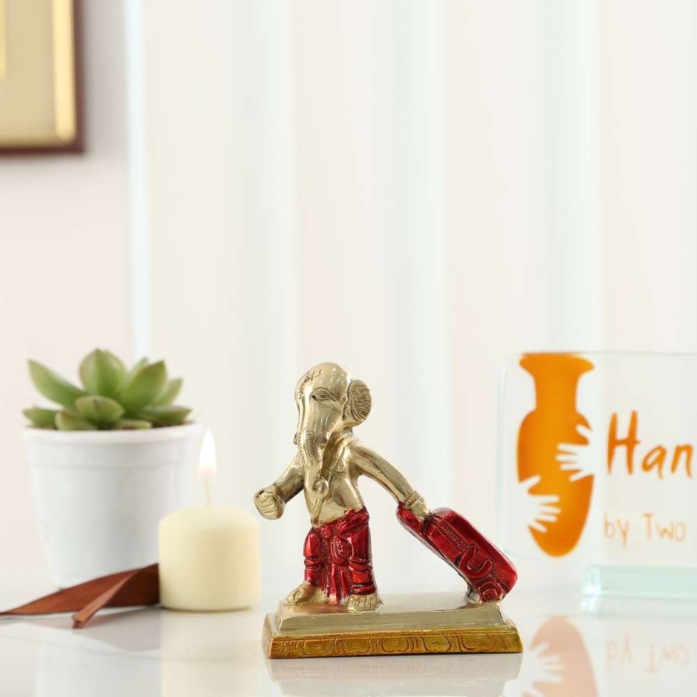 Nothing will look cuter and more pertinent than this Lord Ganesha figurine on your table which is coming to your home and carrying a luggage full of Happiness, luck and prosperity. Crafted from Brass, this handcrafted figurine features the cute tusked deity all packed with luggage and heading for a stay at your home.