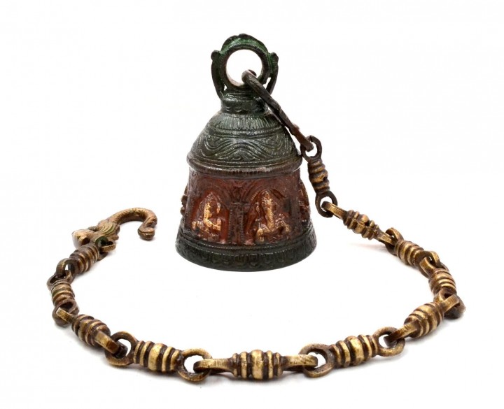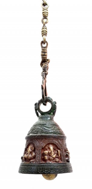 Handcrafted Elegant Brass Ganesha Bell with Hanging Chain - Antique Brown Colour 'Ghanta'' in Hindi means bell. Bells are an integral part of Hindu temple worship. According to experts, a well-designed bell produces long strains of the sound 'OM'. Its sound also drives away the evil forces, negative energies and bad omens. The sound from a perfect Ghanta or bell is uninterrupted, reverberating, deep and sonorous. Symbolically, the body of the bell represents time - Ananta. This Ghanta is considered to represent Ganesha. So when the bell is rung, these gods and goddesses bless all the devotees present. • The hanging bell is powerful Pooja implements and creates positive energy. So, grab one for yourself or your nears & dears, now.