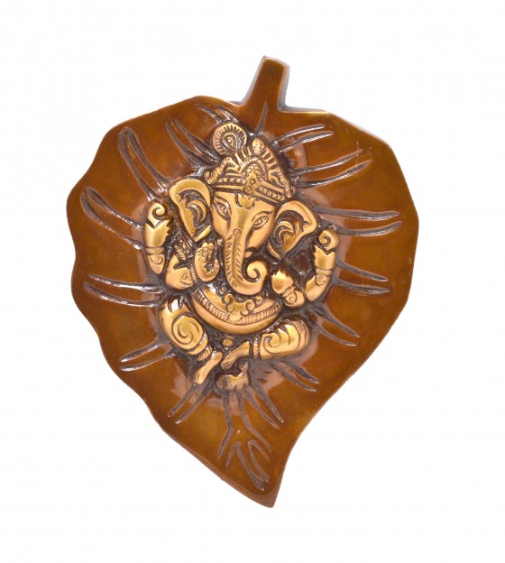 A beautifully crafted wall hanging! Yes, that is what perfectly describes this one from Two Moustaches. It has the embedded image of Lord Ganesh on a peepal leaf. Lord Ganesha's vahana, the mouse finds place on the leaf too. It will give your home a religious and artistic touch. The leaf and the image have been crafted meticulously with minute details. Royal Brown colour coated brass has been used to craft Lord Ganesha and the mouse. The wall hanging will look pretty in your living room. So get this wall hanging now and get compliments from its onlookers.