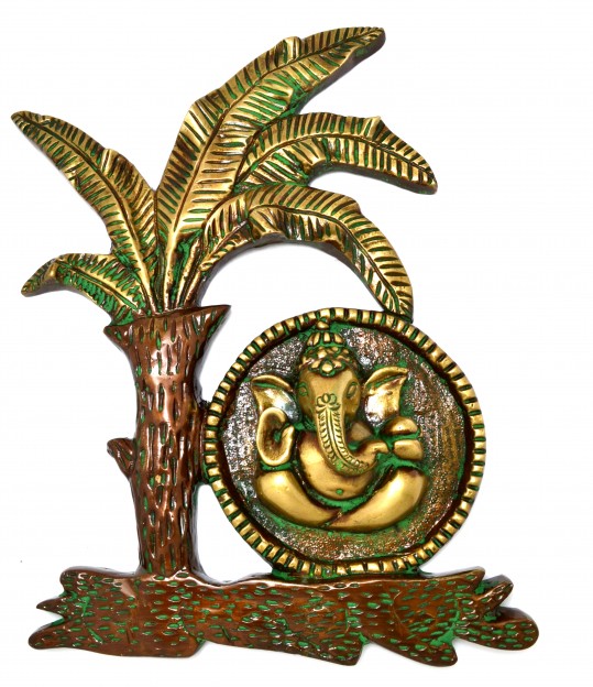 Beautiful Ganesha under Banana Tree Wall Hanging , embossed with Kundan Work,to give your wall a decorative and Festive Look while also proving to be decorative and beautiful. Ganesha figuring under Banyan Tree gives the Wall Hanging an auspicious look.