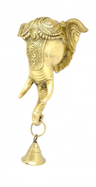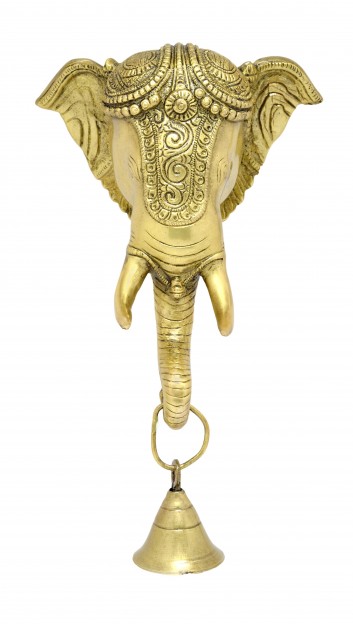 Impart an auspicious look to your home interiors with the appealing design of this Bronze Brass Ganesha Wall Hanging from Two Moustaches. Made of corrosion-resistant and durable brass material, this Gold-colored wall hanging features Lord Ganesha's face along with a bell. Easy to maintain, this wall hanging elevates the vastu design of your modern home. This can be a good gifting option for house warming parties too.