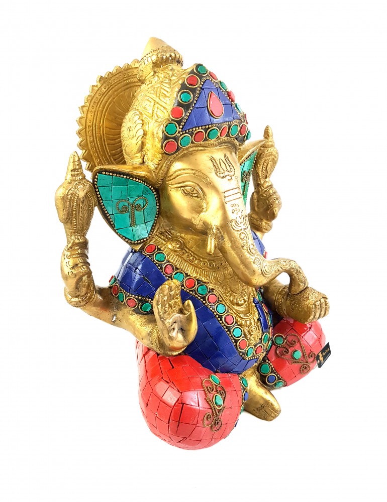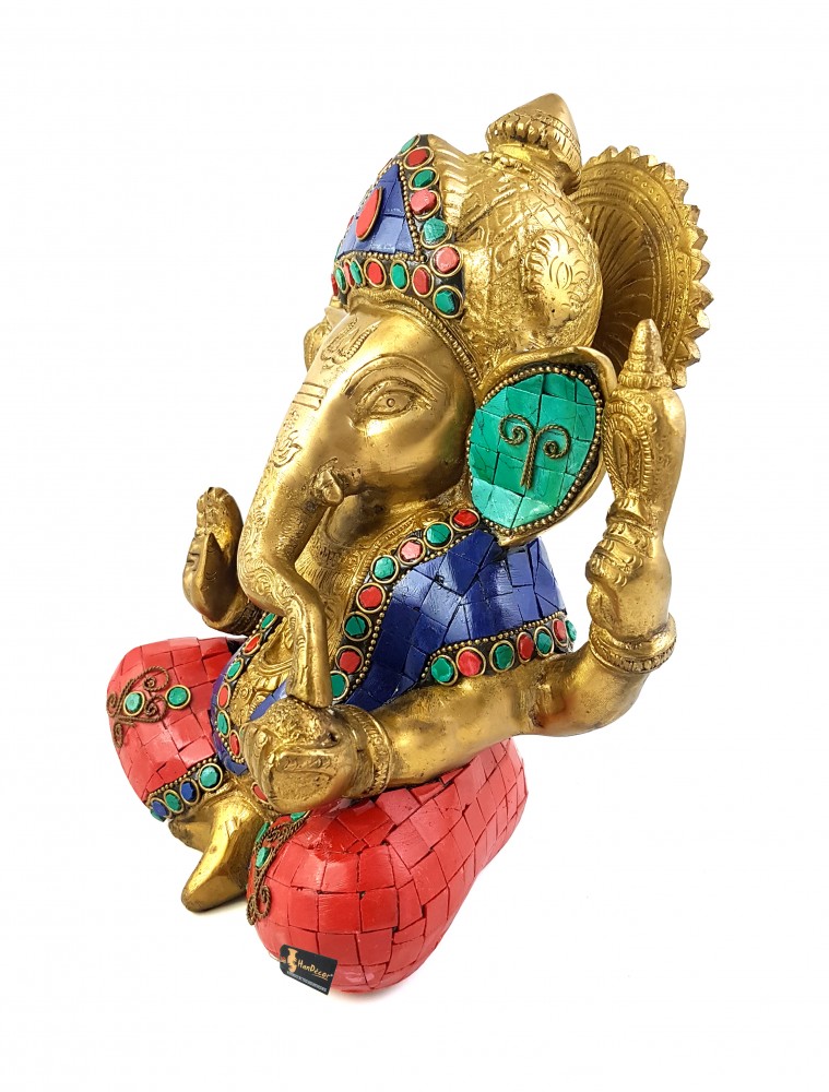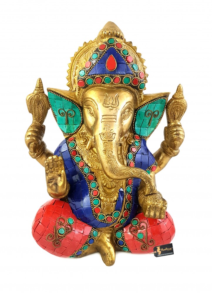 Ganesha is the lord of success and destroyer of obstacles and evil. Show your unparalleled devotion towards the lord of prosperity by bringing home this beautiful Ganesha. Are your friends into spiritual decor items? You can gift them this lovely Chaturbhuja Shree Ganesha in a sitting position. This statue has divine grace and charm. A fine fusion of spirituality and purity this Chatrabhuj Ganesha awaits to shower blessings to your home. Made from brass, this beautiful hand crafted idol with gemstone work makes it a must have. Show your devotion towards the Supreme Lord who removes all obstacles and bring home this beautiful Ganesha. Shop with confidence! Sit back and enjoy shopping while this product is delivered for free at your doorstep.