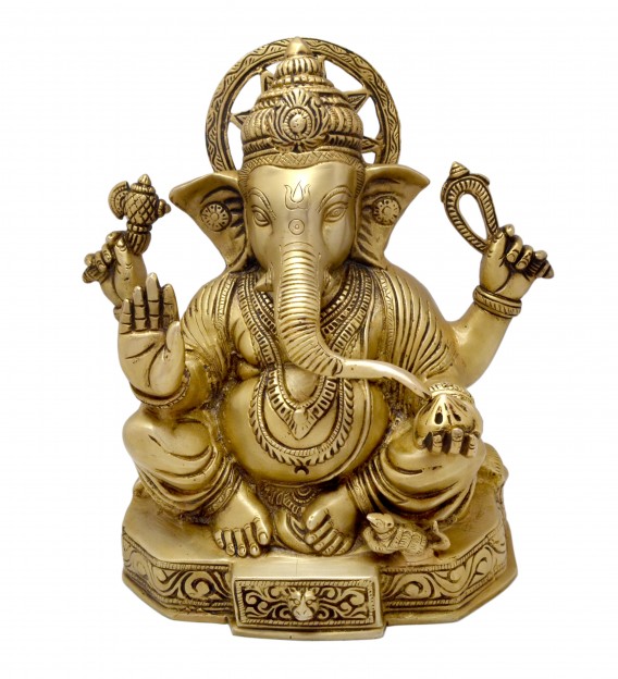 This brass idol of God Ganesha is meant for performing puja at home, or for simply decorating your home in a Hindu way. Lord Ganesha represents Joy and happiness which is symbolic to bring Prosperity and Good Luck. Ganesha also spelled Ganesh, and also known as Ganapati and Vinayaka, is one of the best-known and most worshipped deities in the Hindu pantheon. His image is found throughout India, Hindu sects worship him regardless of affiliations. Although he is known by many attributes, Ganesha's elephant head makes him easy to identify. Ganesha is widely revered as the remover of obstacles, the patron of arts and sciences and the deva of intellect and wisdom. As the god of beginnings, he is honoured at the start of rituals and ceremonies.