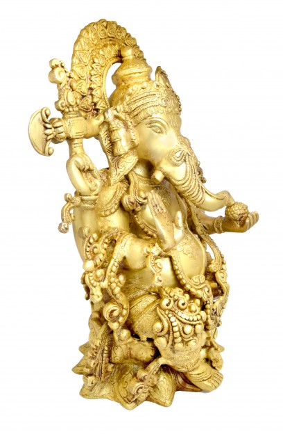 This brass idol of God Ganesha is meant for performing puja at home, or for simply decorating your home in Hindu way. Lord Ganesha represents Joy and happiness which is symbolic to bring Prosperity and Good Luck.