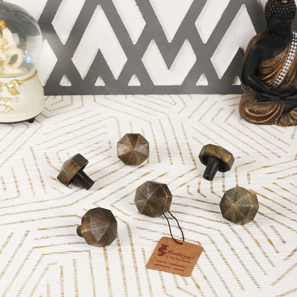 Add a personal touch to a chest of drawers with this handmade spiral design drawer knob handle. You push and pull your drawers, why not make it more than just functional? Make it decorative, too! Antique Brass Finished Metal Pull is perfect for adding a special touch and upgrade to your furniture and home accents. Give those desk, dresser, and cabinet drawers a face lift with this lovely handle. This drawer/wardrobe knob has a beautiful and eye-catching design. Our unique knobs collection can be used for updating the furniture or refurbishing a home or kitchen cabinet. The Knobs are made of solid metal and are of High-end International Quality along with durable Metal finish. Handcrafted in iron with utmost detailing and antique brass finish, the metal knobs infuses vibes into the home and add a utility solution. Anyone visiting you will be delighted and transported to a good mood as soon as they lay their eyes on this stunning knob.