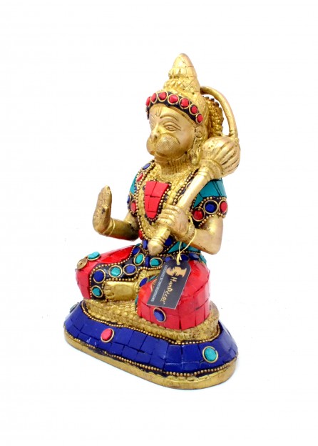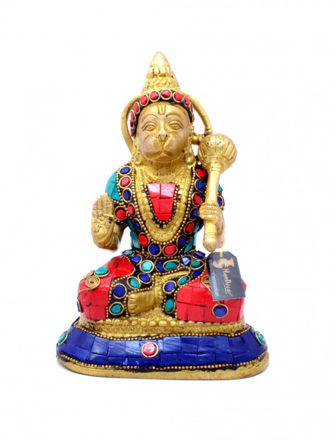 Hanuman, the mighty Hindu deity that aided Lord Rama in his expedition against evil forces, is one of the most popular idols in the Hindu pantheon. Believed to be an avatar of Lord Shiva, Hanuman is worshiped as a symbol of physical strength, perseverance and devotion. The monkey god's tale in the Indian epic Ramayana is known for its astounding ability to inspire and equip the reader with the ingredients needed to face ordeals and conquer obstructions in the way of the world. In times of trouble, it is a common faith among Hindus to chant the name of Hanuman or sing his hymn ("Hanuman Chalisa") and proclaim "Bajrangbali Ki Jai" - "victory to thy thunderbolt strength". A vanara (monkey-like humanoid), Hanuman participated in Rama's war against the demon king Ravana. This is a beautifully crafted statue of Hanuman in brass metal. This statue is an ideal hindu style decor object. Be sure to fill your life with happiness and prosperity if you gift it to your loved ones or if you own one for yourself. He is a symbol of extreme power and fearlessness. This brass statue is extremely lightweight but highly durable and sturdy. There are five ways of prayer to the Lord. They are Naman, Smaran, Keerthanam, Yachanam and Arpanam. Lord Hanuman always used to Naman, Smaran and Keerthanam of Lord Sri Rama. He totally surrendered (Arpanam) to his Master Sri Ram. He also begged (yachanam) Sri Rama to bless him the undivided love. Hanuman statue can be a great gifting option during housewarming parties, birthday parties, weddings, festivals such as Diwali, Hanuman Jayanti etc. Statue can be a perfect decoration piece to be kept at home, offices, factories or bungalows. Lord Hanuman statue can be used for puja at home. Place this calm art piece in your living room for an effervescence beauty or gift it to your loved ones before he/she enters a new phase in life. It represents the power of the Supreme Being who removes obstacles and ensures success in human endeavors.