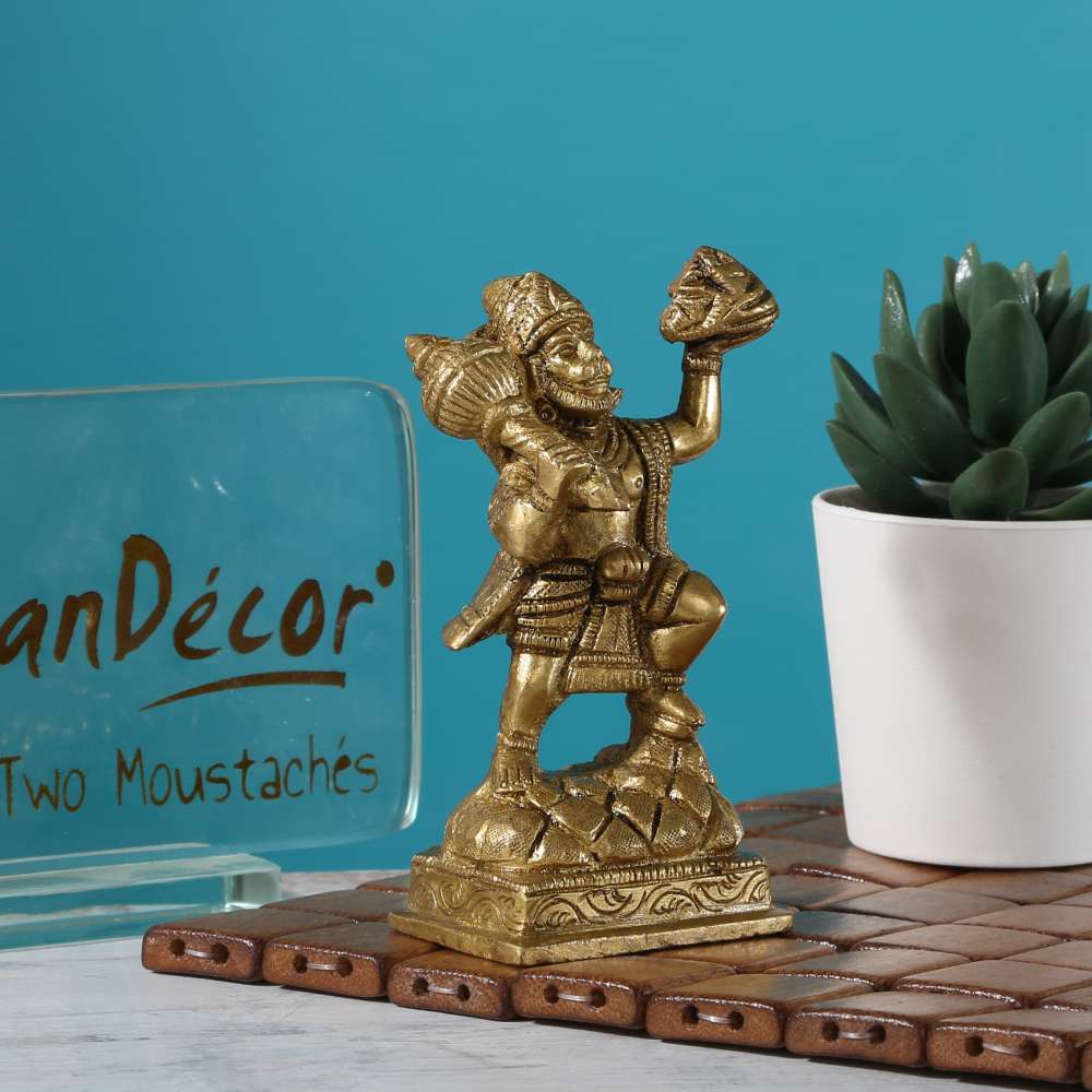 Hanuman is the ape deity who had guided Lord Rama during his expedition against the evil forces. This form of Hanuman’s image is based on one the most significant events in the Rama-katha. This brass artifact of Hanuman which is carrying the Sanjeevani Parvat can be gifted to someone who has fallen ill. The Parvat was carried by Hanuman so that Lakshman can be healed.