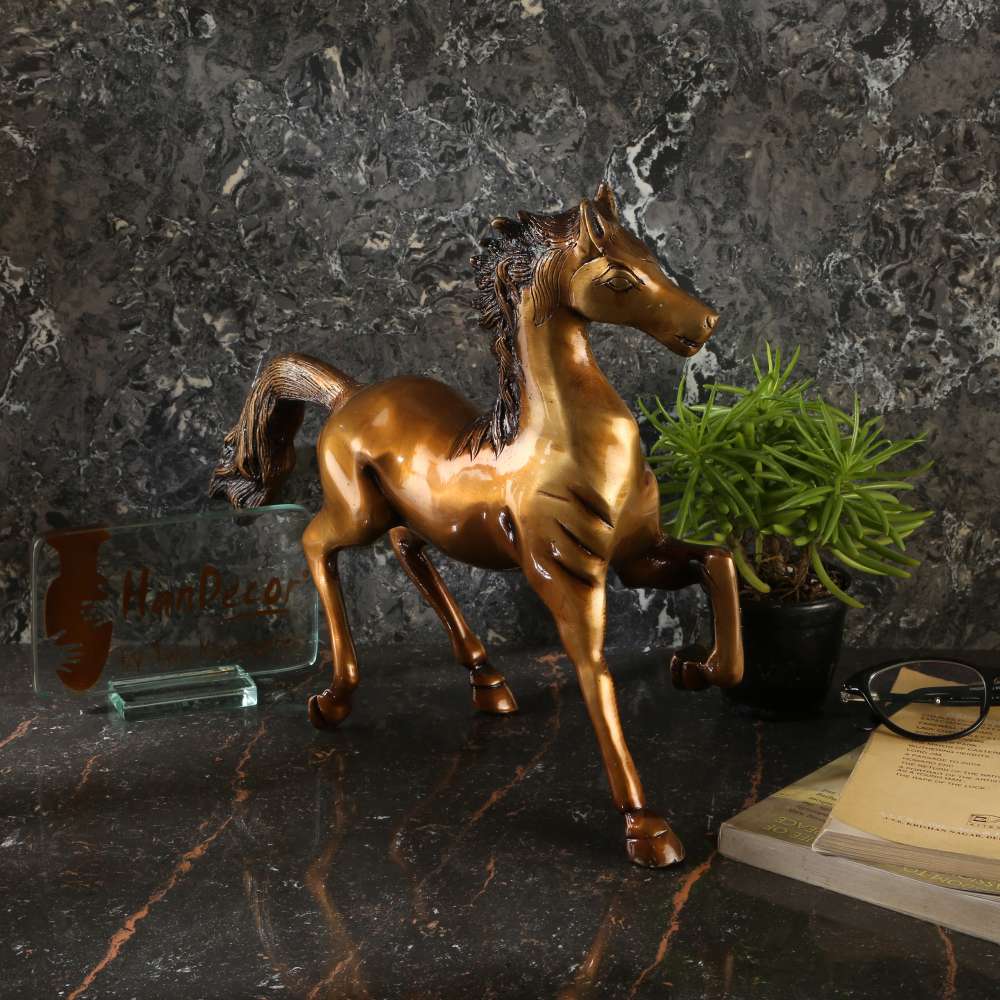Since time immemorial, horse are associated with speed, power and elegance. So much so, that till date the power is measured in terms of Horse Power or HP. This brass sculpture is a salute from our artist to that speed and power that horses are known for. Not only this statue makes a great looking decor for your living room or office cabin but also confirms your belief in strength, and the will to move forward in life. Symbolic and very meaningful.