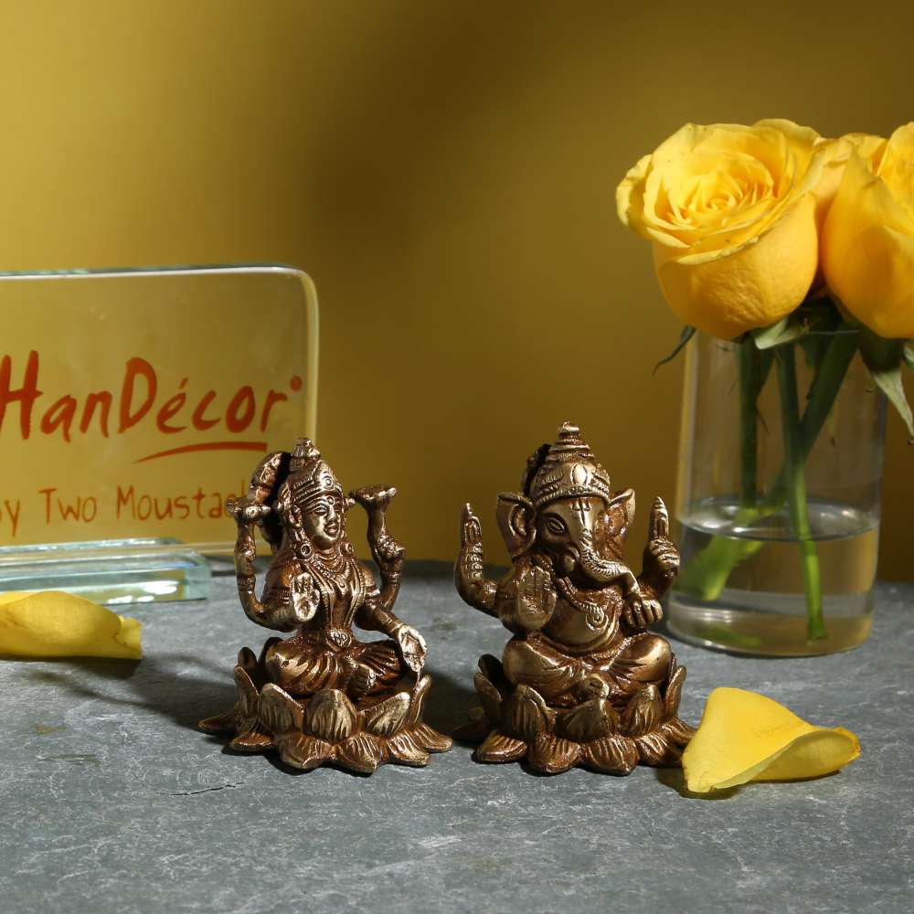 The most important of Diwali celebrations is the Lakshmi - Ganesha pooja. Goddess Lakshmi is the Goddess of wealth and prosperity. Lord Ganesha is worshipped first on every pooja and is the God of pure consciousness, good luck, knowledge and wisdom. The auspicious pair of Lakshmi-Ganesh idol brings charm and grace to an individual's office and home. This set is a perfect gift for your loved ones.