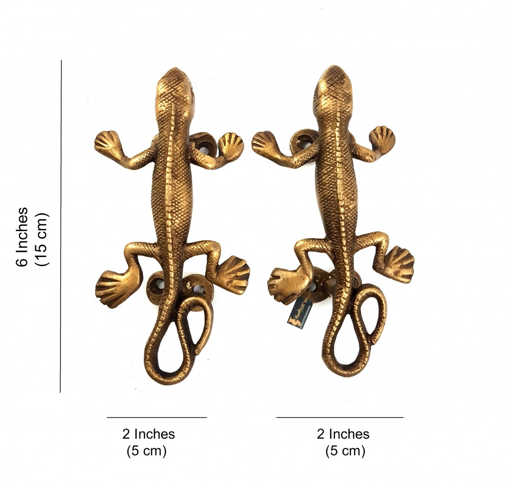 The brass lizard handle is made by artisans using traditional casting techniques. these beautiful brass Lizard door handles will transform, an ordinary cabinet into an exquisite piece of furniture. The Door handle measures 5.2 x 2 x 2 inches. There are four holes for screws at the top at bottom of the handle. The handle itself is very strong and durable, therefore it will last you for years altogether. Because of its amazing craftsmanship, the product can also be gifted to friends and family.
