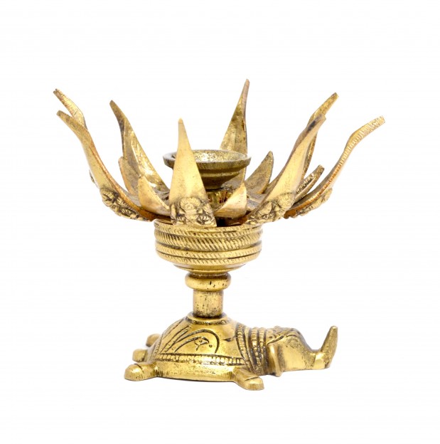 Diyas made of brass are permanent fixtures in homes and temples. A diya placed in temples and used to bless worshipers is referred to as an aarti. Install this diya at your home temple for performing Puja and Aarti in the Hindu way. Yellow brass metal used in the making of this sculpture makes your home decor more vibrant. Even when unlit, the Handmade Indian Brass Oil Lamp is a gorgeous addition to the decor of any room.