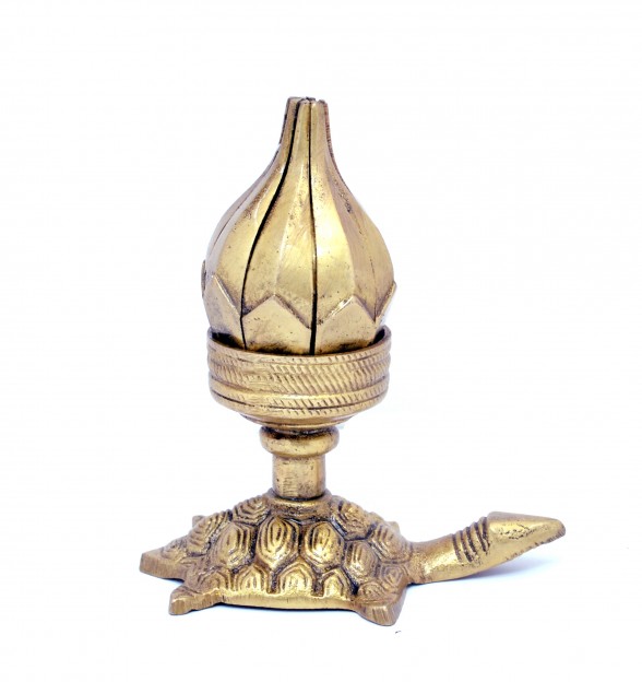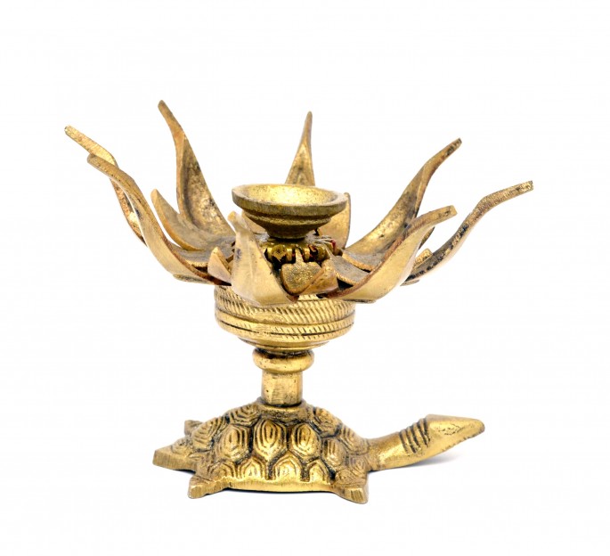 Give to your home the feel of serenity with this unique lotus shaped brass wick lamp diya. When closed, the diya is in the shape of a bud. As you rotate the bud, the diya assumes the shape of full-blown flower. A diya is an oil lamp with a cottonwick dipped in ghee or vegetable oils.
