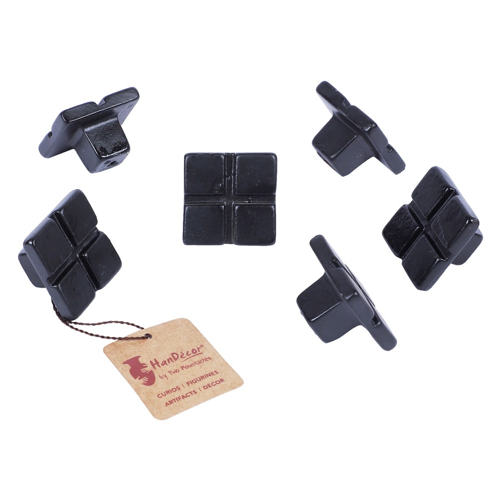 Modern 4 Blocks Design Cabinet/Wardrobe Knobs Black, Pack of 6