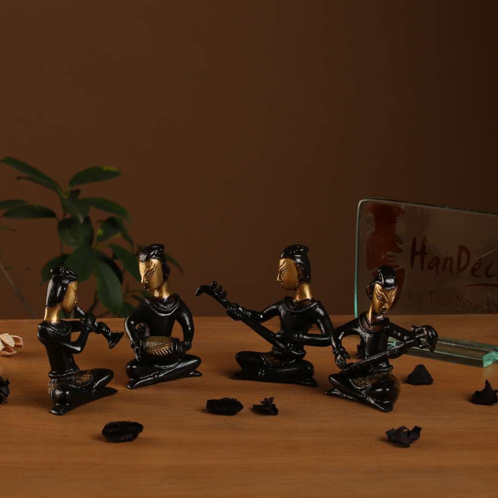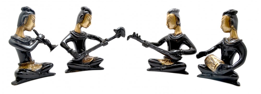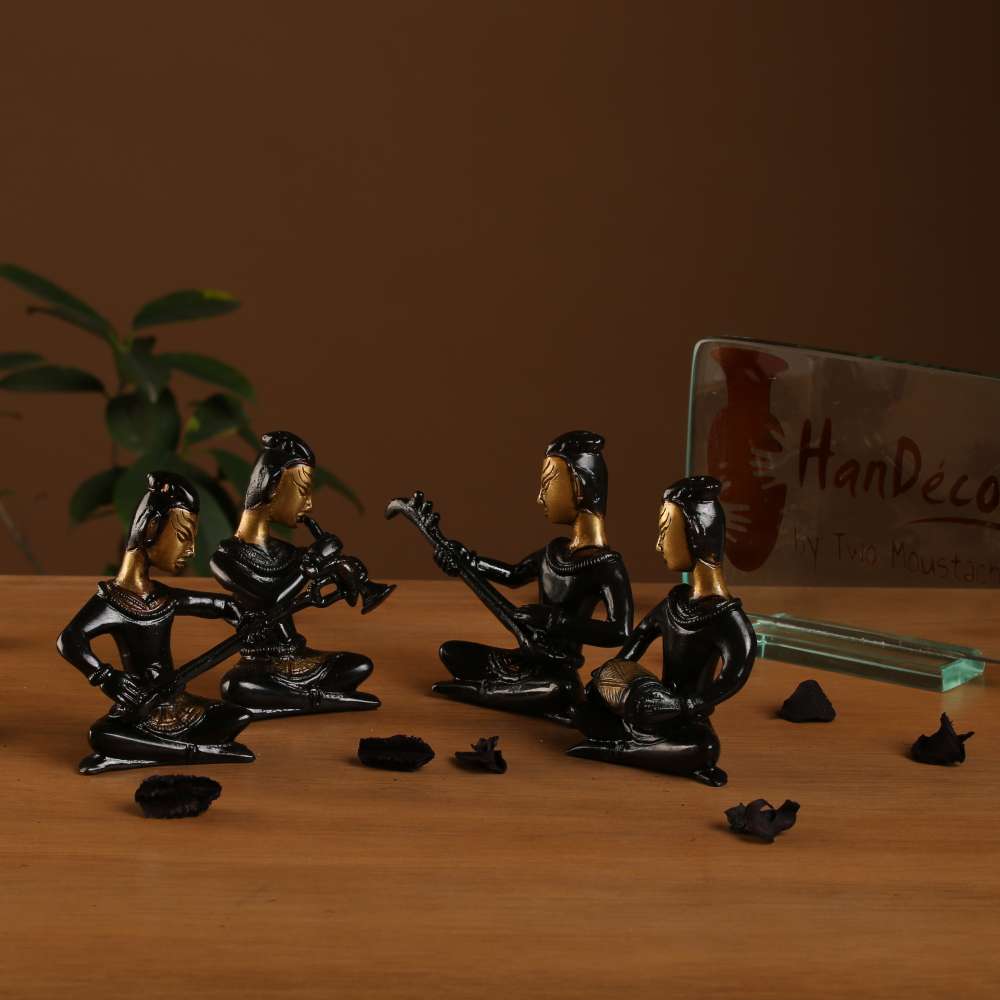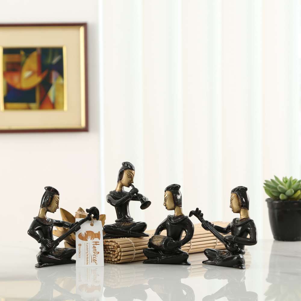 Want decor items that are vibrant and stand out from the rest? Handecor gives you a veritable stunner in the form of this four piece musical ladies set. Crafted from brass for enhanced durability, this beautiful showpiece comes in a lovely golden brown and black combination.