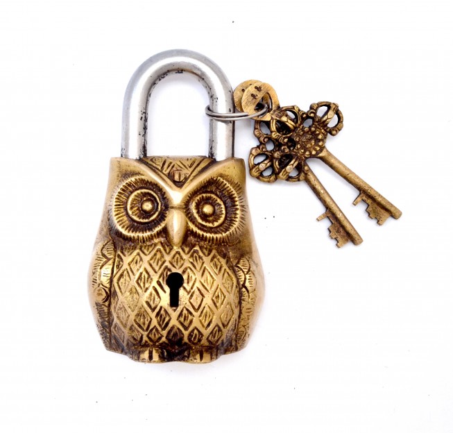 The royal brass locks on ancient mysterious doors is what you remember when you see this piece of art. The lock is made in brass and coated with golden finish. Handcarved in it is an Owl - "The Vehicle of Goddess Lakshmi". The brasswork displays the intricacy of the art. The lock comes with two keys and gives an ancient and rich look to your door.