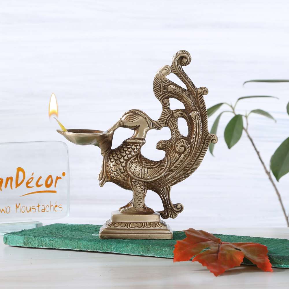 This Beautifully Designed Peacock Deepak Is A Must Have For Any Pooja Room. Its Gleaming Charm And Intricate Design Work Is Sure To Enchant The Look Of Any Area With Its Very Presence. When Lit, It Will Mark The Presence Of Festivity And Positivity In Its Surroundings. Its Detailed Structure Makes It Even More Desirable. Add A Touch Of Tradition To Your Home With This Peacock Deepak.