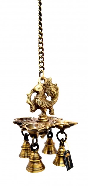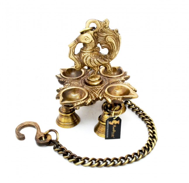 Brass Diya is a traditional spiritual item. It can be used with oil to light up your decoration or home and it can also be hanged with chain. This handmade metal craft is unique for gifts and decoration. Ring in prosperity and good fortune to your home by getting this deepak hanging. This wall hanging is made of brass and features peacock on the top and has a diya with four wicks at the bottom. This can be a good gifting option for house warming parties too.