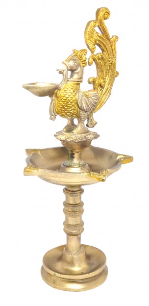 Lend a visual treat to all those visiting you by getting this Two Moustaches Peacock Design Five Wick Brass Oil Lamp Diya. Made of good quality brass, this multicolored oil diya is shaped like a peacock and has a beautiful round-shaped base and has 5 wicks for holding oil. Sturdy, easy to maintain and long lasting, this oil diya makes a great addition to any type of decor.