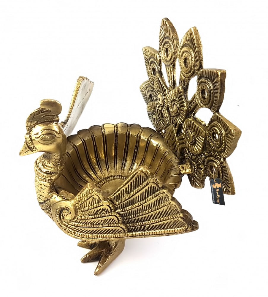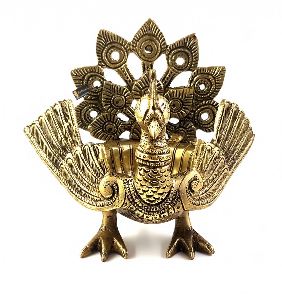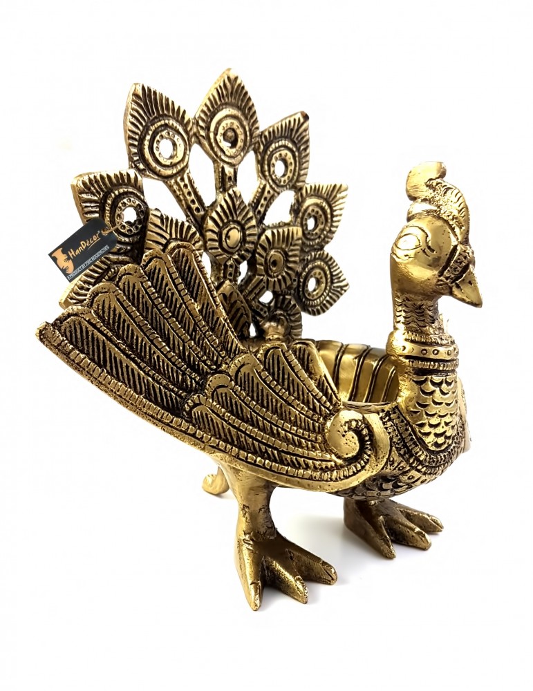 Beautify your home with this bizarre Ethnic Winged Peacock Design Brass Urli. It has a distinctive shape and design. Fill it with water and place floating candles or flowers in it and create a mesmerizing ambience. It is produced using sand casting techniques that have been passed down through generations of skilled traditional metalworkers.